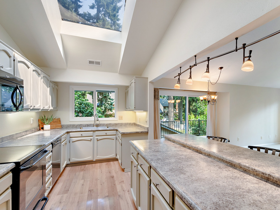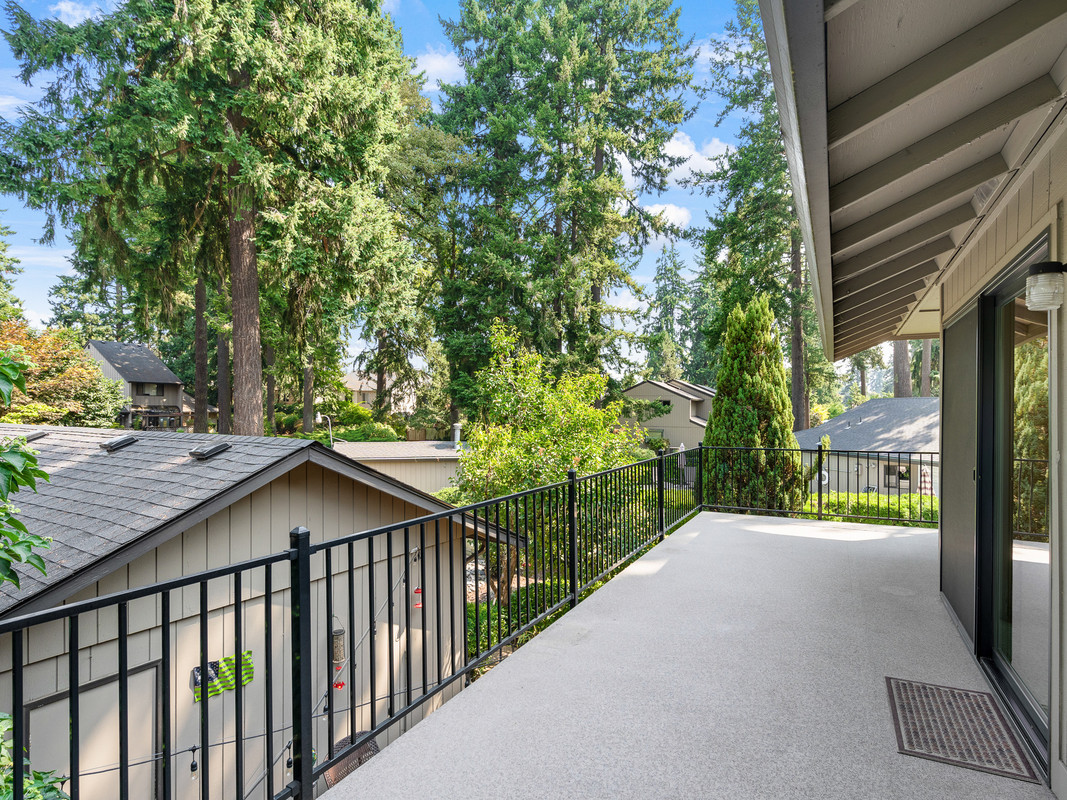 Come see this beautiful one level, second story condo with views of the pool and green space! Extra large decks provide easy outdoor living space . Lots of windows and a kitchen skylight allow natural light to shine throughout the condo. Open concept kitchen and built-in living room wet bar makes it a perfect space for entertaining. Large primary suite has a private full bath and a walk-in closet. Need storage? Unit has a detached 2 car garage, pantry, and attic space. All appliances stay as well as the washer/dryer making this special home move-in ready. Oh, did I mention the vaulted ceilings, A/C, new water heater and updated vinyl windows? This condo has it all. Community is set in a tranquil setting with mature landscaping, clubhouse, sports court and it's close to I-205 for an easy commute. It's also next door to the Royal Oaks Country Club and a quick drive to Vancouver Mall. Schedule your showing today or come see it this weekend!