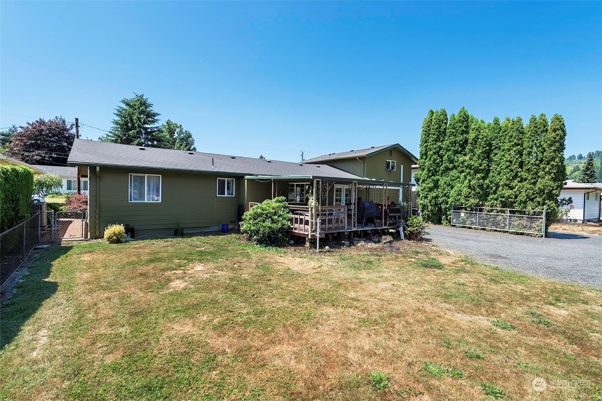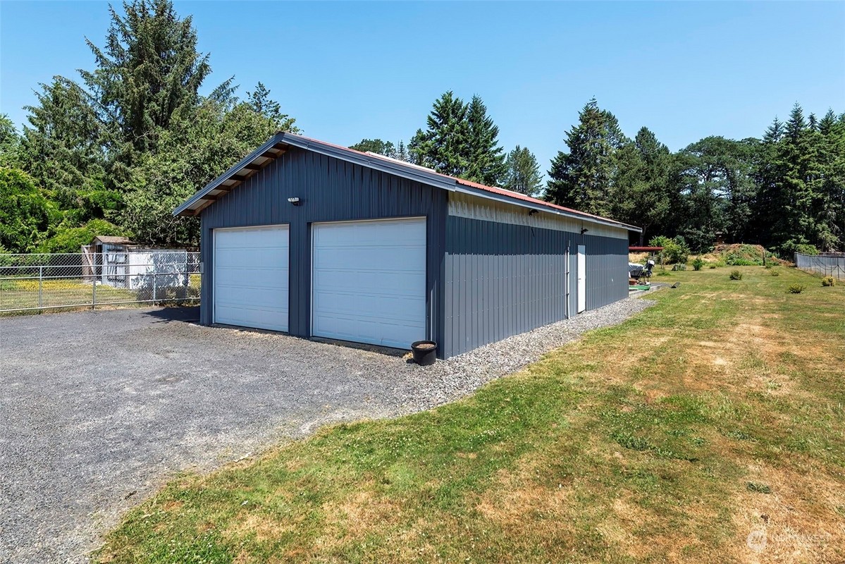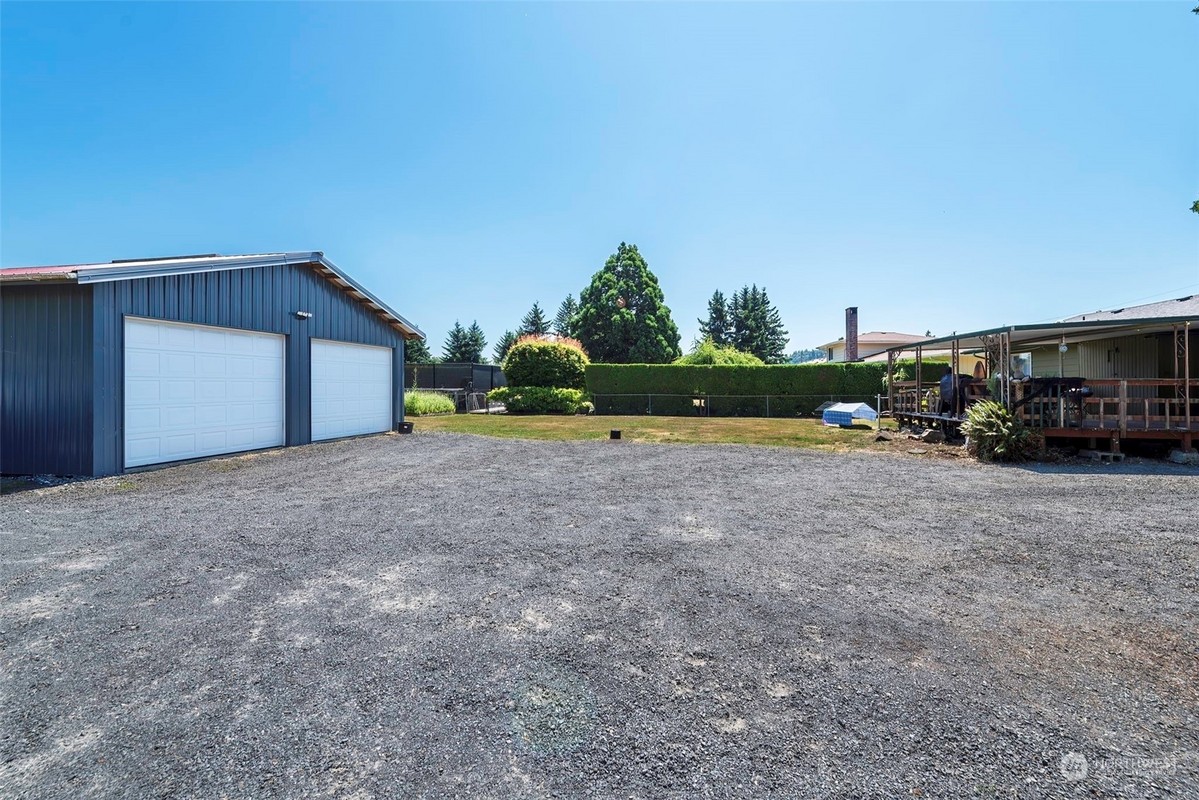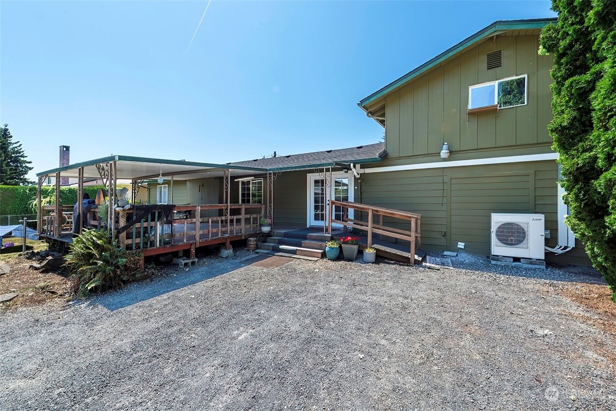 3 bedrooms 2.5 baths on over half an acre in a quiet neighborhood. Large primary with on suit bath. Another huge bedroom above garage with bath & walk in closet. Updated kitchen, living room with French doors out to the deck. Yard is fenced on either side featuring covered area, fire pit, 24x48 shop, and a 24x30 concrete pad. 4 year old roof. 3 Ductless mini split units.