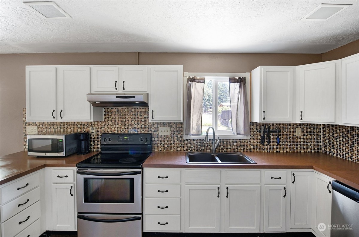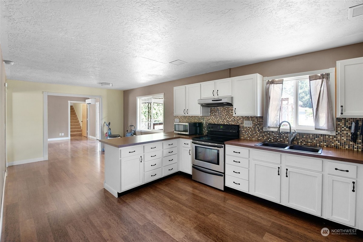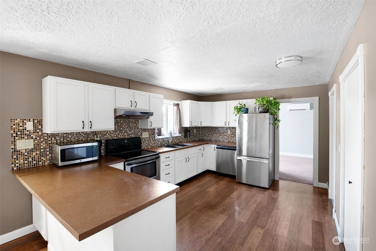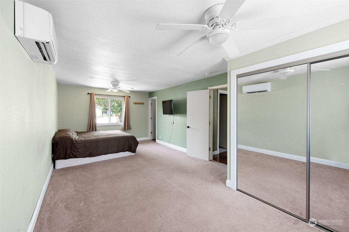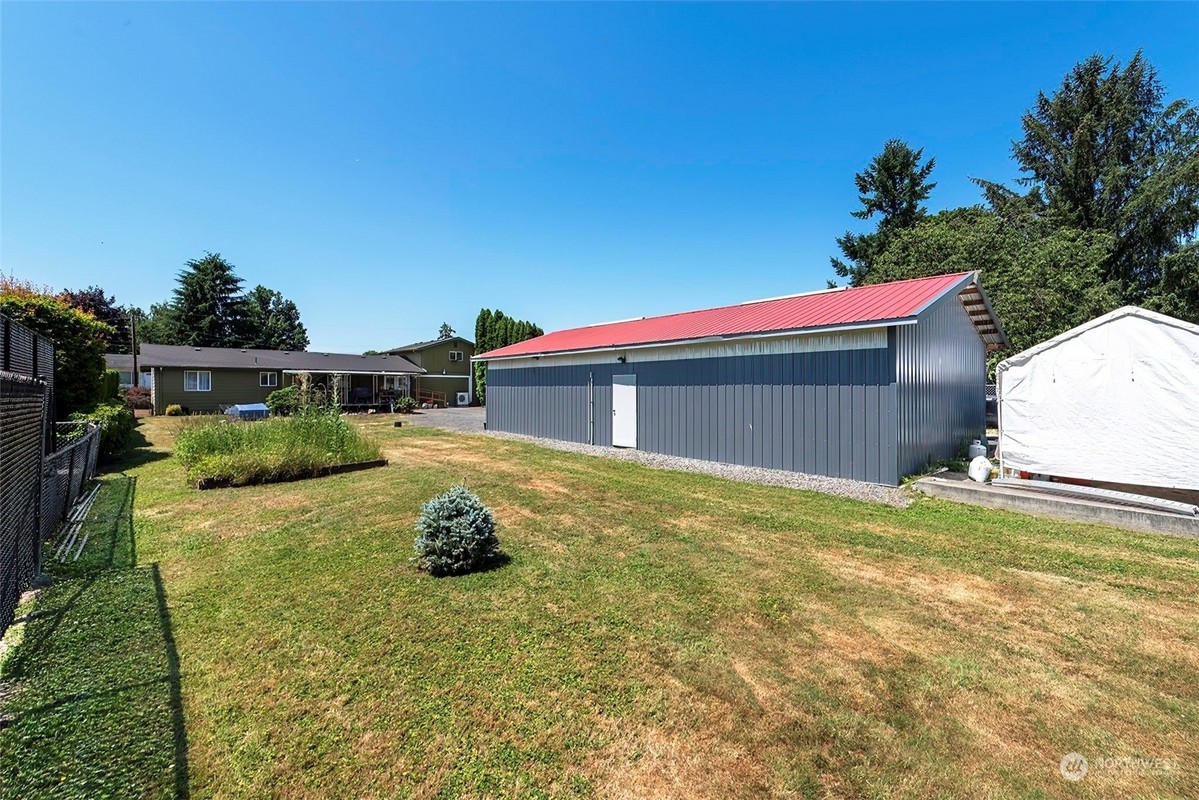 3 bedrooms 2.5 baths on over half an acre in a quiet neighborhood. Large primary with on suit bath. Another huge bedroom above garage with bath & walk in closet. Updated kitchen, living room with French doors out to the deck. Yard is fenced on either side featuring covered area, fire pit, 24x48 shop, and a 24x30 concrete pad. 4 year old roof. 3 Ductless mini split units.