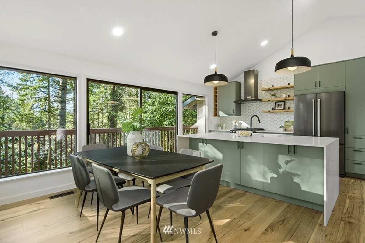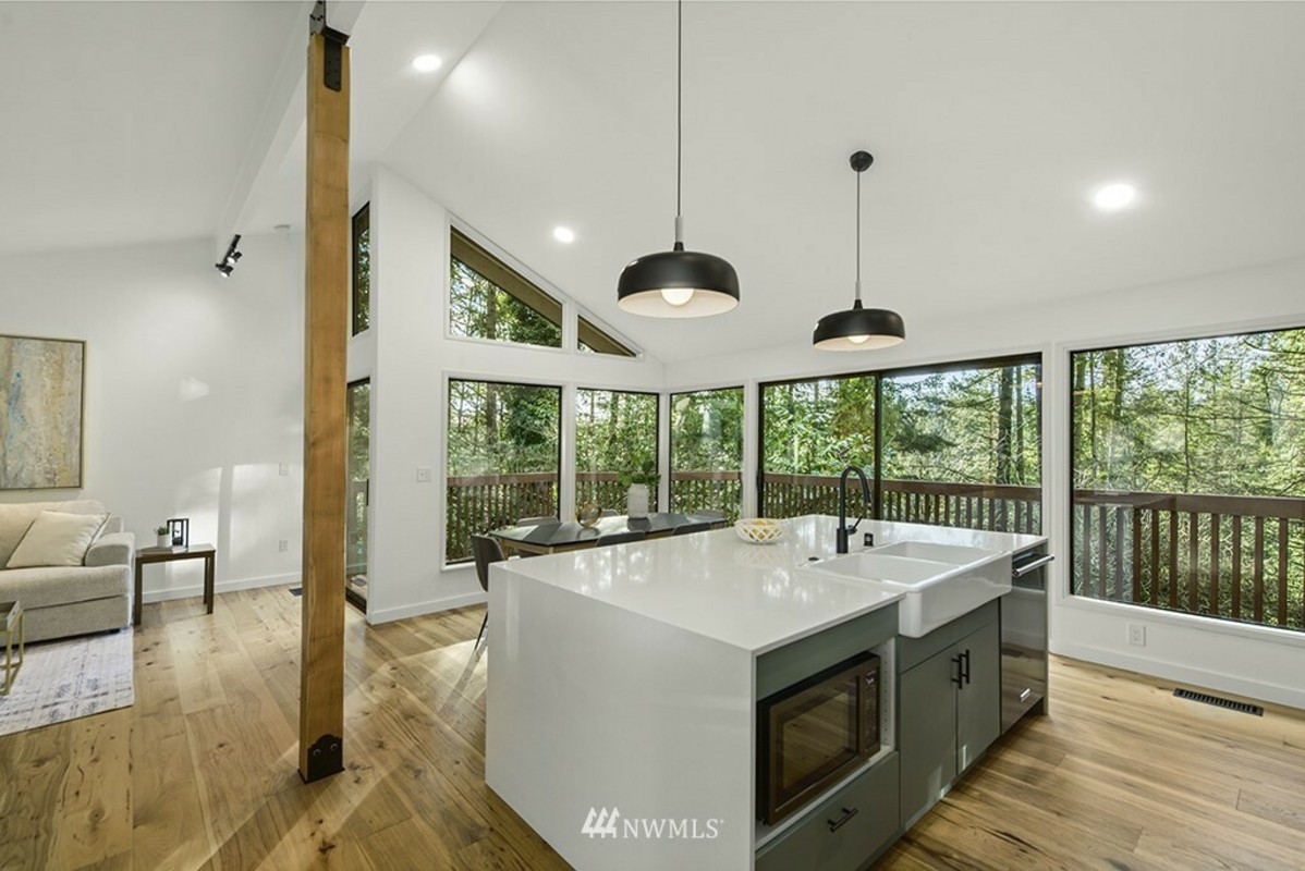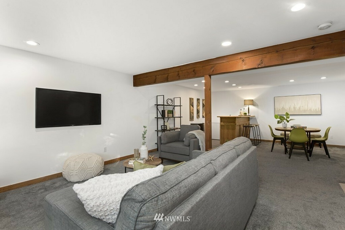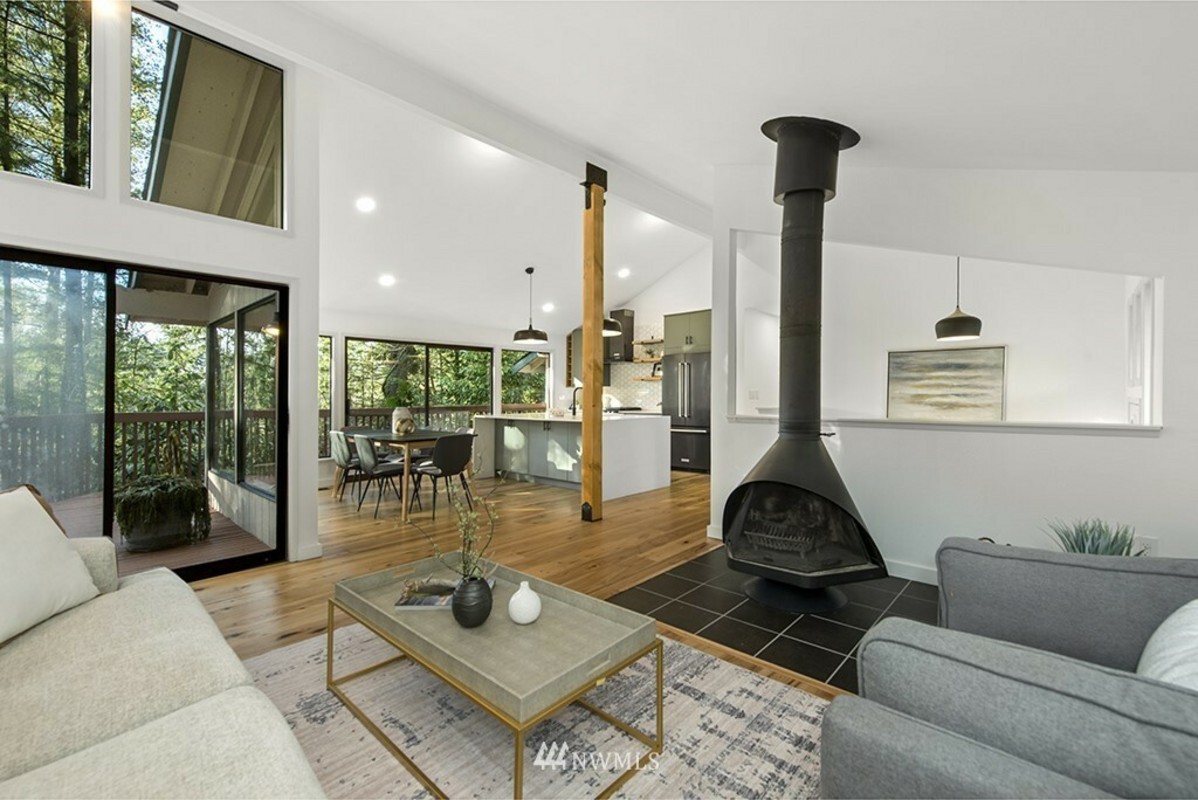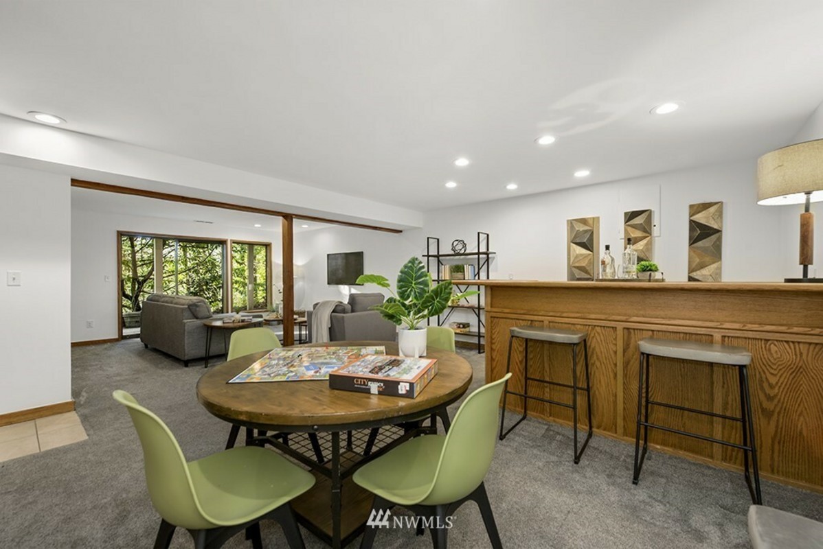 2,190 sqftAt the intersection of design + livability sits this fabulously updated home on a large & serene lot in the heart of Shoreline. Upon entrance, you are warmly greeted by hickory wood floors, fresh paint, & a bright & open floorplan connecting a contemporary kitchen w/ new quartz countertops, customized backsplash, & brand-name appliances to a light-filled living room w/ a mid-century designed fireplace. Backing up to a lush greenbelt, the private setting offers a tree fort-style view & truly a wonderland for imaginative play. The ideal layout includes 3 beds/2 baths on upper level & a family room, wet bar, & remodeled bathroom on lower level. Minutes to Trader Joe’s, Costco & quick access to I-5 & light rail. Welcome home.