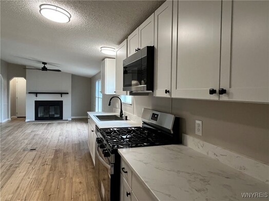 Step into this updated 3-bedroom, 2-bath home that blends contemporary upgrades with cozy comfort. From the moment you walk in you will notice the fresh neutral palette and brand new flooring and light fixtures throughout. This home offers both a welcoming living room and a spacious family room providing extra living space. You'll love the gas fireplace in the family room. All new kitchen featuring modern cabinets and included appliances. Large walk in shower and walk in closet in the primary suite for a touch of luxury. Updated plumbing for peace of mind. Roof and furnace about 14 years, hot water tank 2023. Outside, you'll love the patio for relaxing and entertaining, storage shed with electricity for all your outdoor gear and tools or workshop, and a nice size partially fenced yard. Whether you're a first-time buyer or looking to downsize, this property is great! Open House Saturday 10/4 from 1-3pm.