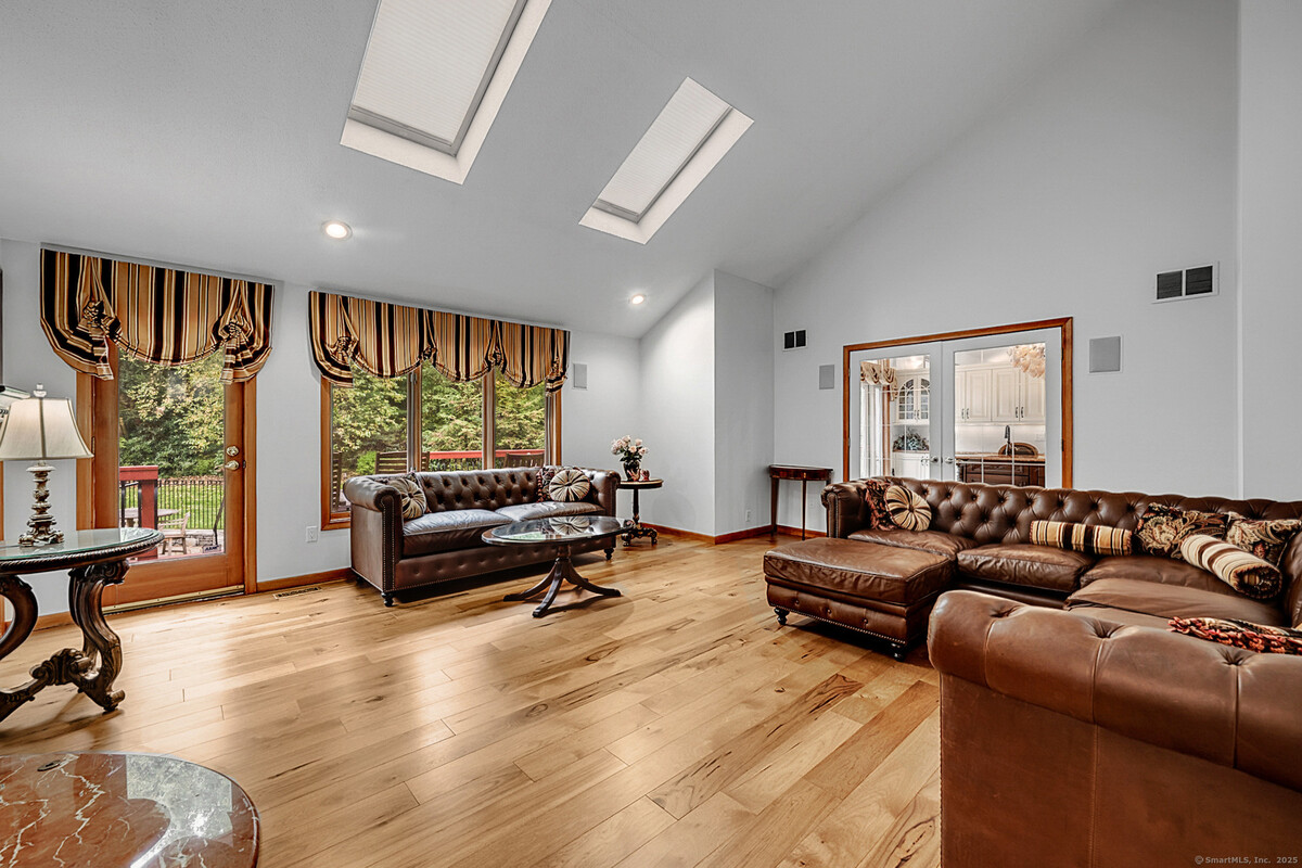 RARELY available is this 5 bed, 4 full/2 half bath contemporary style home tucked away on PICTURESQUE High Ridge Hollow in HIGHLY SOUGHT AFTER West Avon. Convenient, bright, and inviting floor plan features over 5000 SQFT showcasing large rooms, high ceilings and plenty of natural light shining throughout. Chef's kitchen boasts marble countertops, Sub Zero refrigerator, Miele appliances including double ovens, built-in coffee, Viking gas cook-top, double dishwashers, plenty of cabinetry, pantry, two large islands, and beautiful skylights! Main level features impressive formal dining room w/ wood-burning fireplace and a cozy living room w/ gas fireplace along with a guest bedroom suite and 2 additional bedrooms. Upstairs you will find the primary bedroom suite featuring impressive walk-in closet and full bath w/ double vanity, walk-in shower and skylights. Outback, enjoy the serene, tranquil PRIVATE setting, along with a new deck, saltwater pool, and hot tub. Lower level features 2 finished rooms along w/a half bath and adds 975 SQFT of comfortable living space. Additional features include 3 car attached garage, main level laundry, generator hook-up, central air, and irrigation system. Located in a quiet, peaceful and PRIVATE neighborhood setting while providing easy access to all of what the Farmington River Valley has to offer including top-rated schools, shops, parks, award winning restaurants, major highways, and downtown Hartford, this special home can be yours now.
