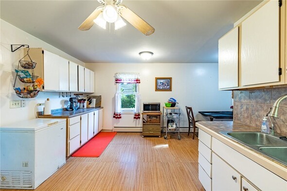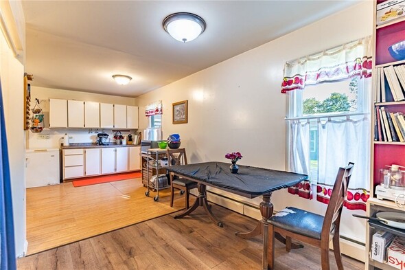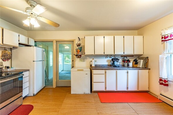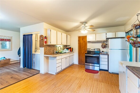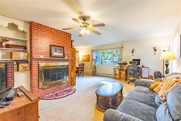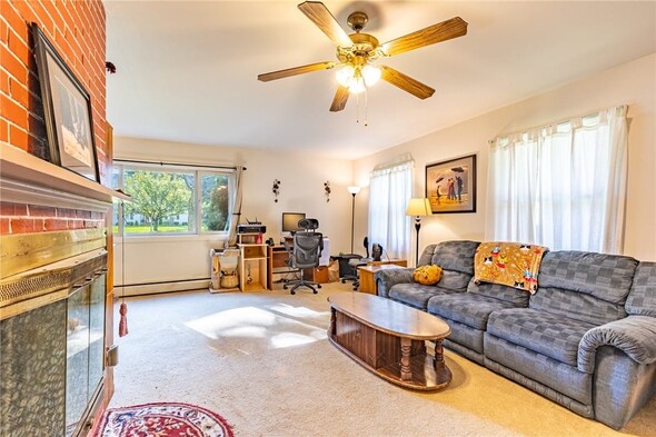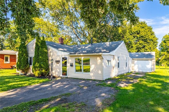 Welcome to 154 Hyde Parkway, located right in the Village of Palmyra. This charming two-bedroom, one-bathroom ranch offers a spacious, well-designed layout along with the convenience of first-floor laundry and a large eat-in kitchen. The living room features a cozy wood-burning fireplace for your enjoyment. There is a large, enclosed porch that serves as a seasonal room with direct to the expansive backyard. There are no delayed negotiations, so don't miss your opportunity to make this home yours!