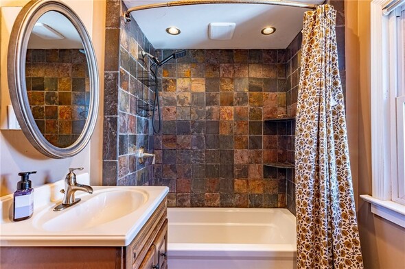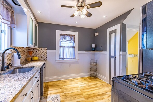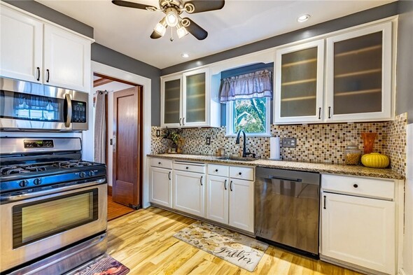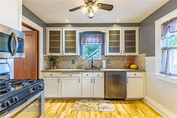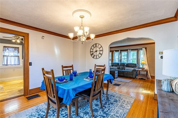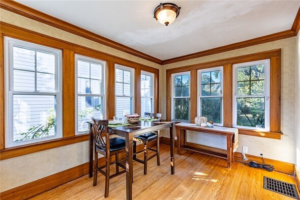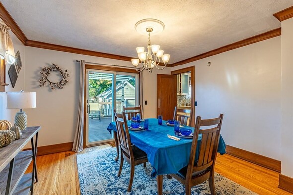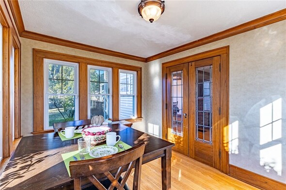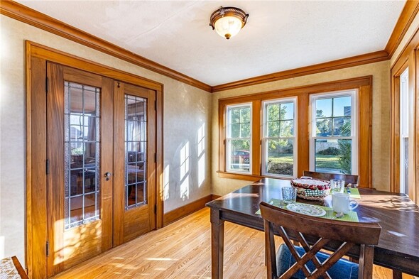 Welcome to the charming home at 10 Chimayo Road in Irondequoit. This beautiful 3-bedroom, 2-bathroom residence offers spacious living areas with gleaming hardwood floors, leaded glass doors, central air, and original natural wood craftsmanship throughout. Upon entering, you'll be greeted by a vestibule-like entryway that leads into the living room or upstairs to the second story. The living room features abundant natural light and a cozy gas fireplace, perfect for the season. Off the living room, you'll find a light-filled office/study or breakfast room, and a formal dining room, which seamlessly connects you to the back deck overlooking the large, fully fenced yard. The kitchen is equipped with granite countertops, ample cabinetry, and stainless steel appliances. Upstairs, the master bedroom boasts double closets, accompanied by two additional spacious bedrooms and a fully updated bathroom. The finished attic provides an ideal space for a study, movie room or workout area. Additional features include a multi-car driveway and a two-car detached garage. Don't miss your opportunity to own this charming and turnkey home! There are no delayed negotiations.