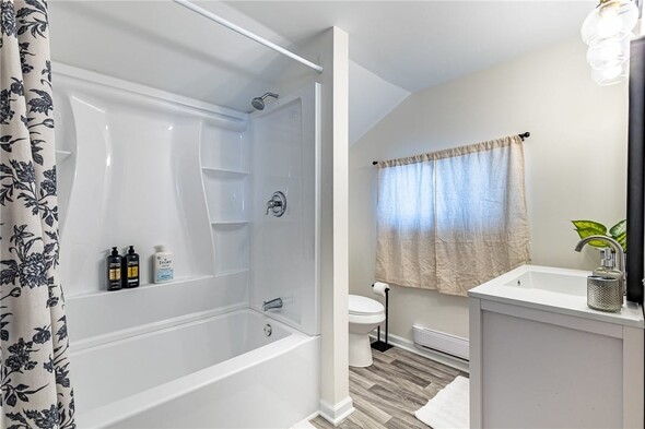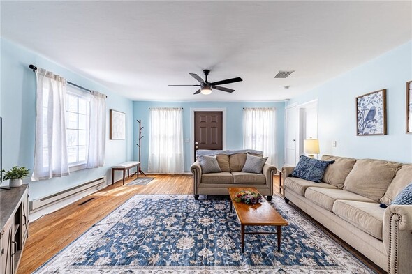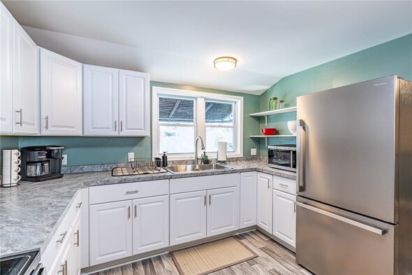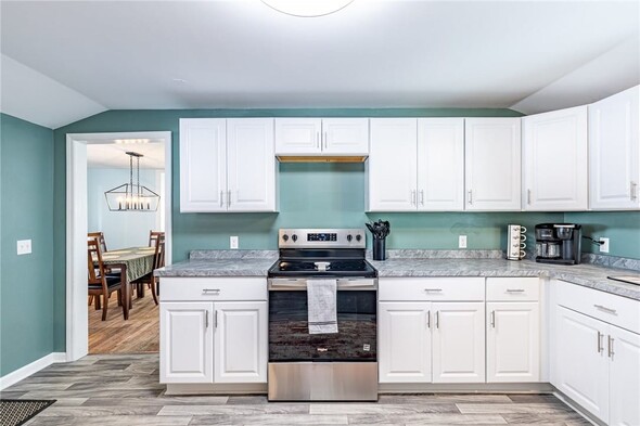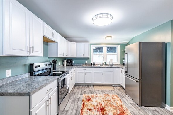 Welcome home to 49 Maple! This charming 3-bedroom, one-bathroom house offers the opportunity for comfortable one-level living even as a two-story! Brand new everything: kitchen, bathroom, flooring, hot water tank, electric, and roof! This home has SO MUCH to offer. As you enter, the large front living room offers ample space to relax and plenty of natural light from large windows. Directly off the living room there is the first floor bedroom with new carpet. From the living room you'll enter the formal dining room, which has plenty of space for gathering and entertaining.The second bedroom is located off the dining area and can offer versatility as a home office or bonus space.Flowing seamlessly from the dining room you'll enter the updated and bright eat-in kitchen. With plenty of cabinetry, counter space, and stainless steel appliances, this isperfect for everyday living! The beautifully updated bathroom is located on the first floor. Enjoy the convenience of first floor laundry too! The third large bedroom is located on the second floor. Outside, you'll love the large backyard, covered patio and 1-car garage for extra storage and convenience. No delayed negotiationsdont miss your opportunity!