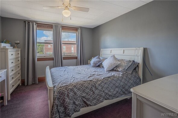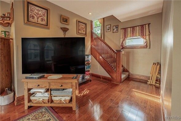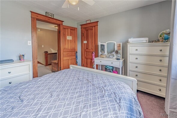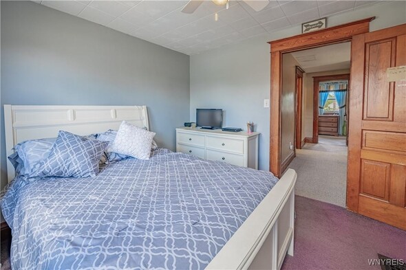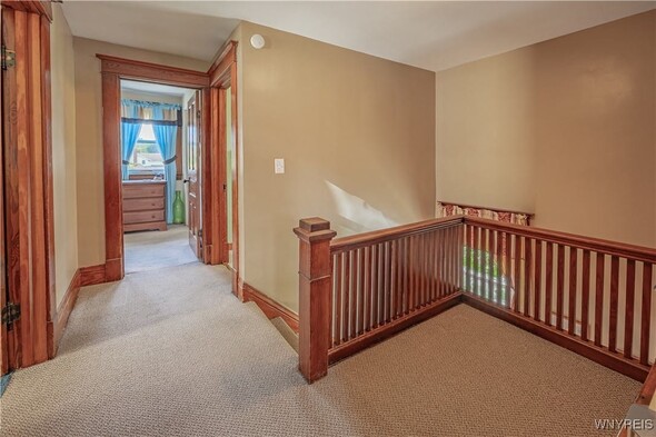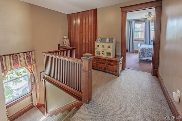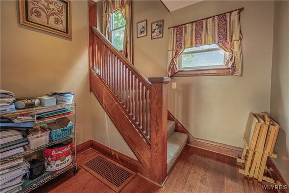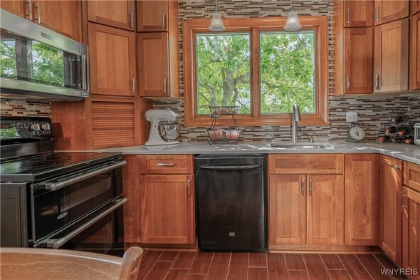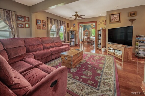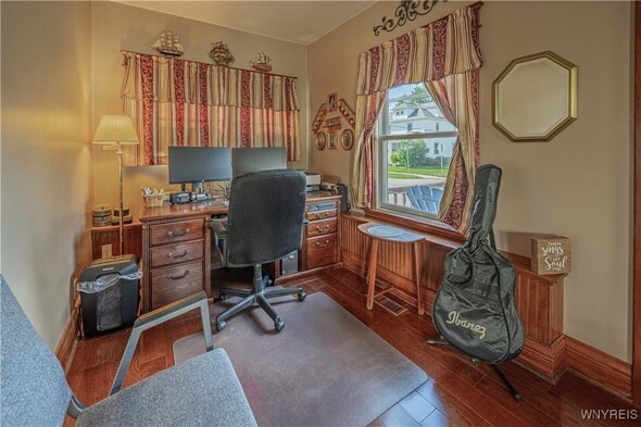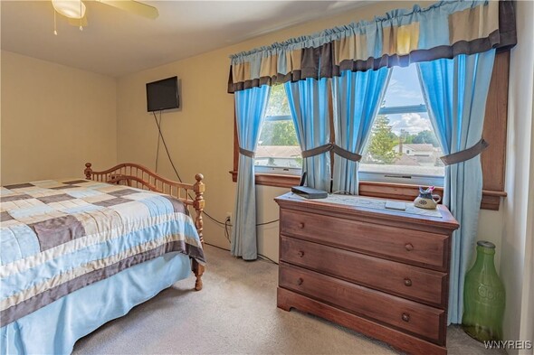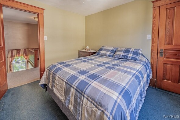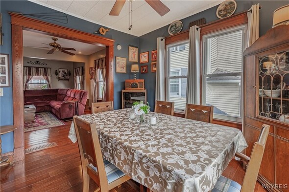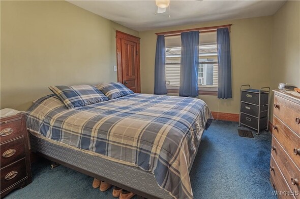 This well-maintained two-story cape style home is located in the heart of Newfane. This home offers 3 bedrooms 1.5 baths and full basement. Gleaming hardwood throughout living room and dining room create an elegant touch while the pristine original woodwork contributes to the home's unique charm and character. Renovated eat in kitchen in with high ceiling, double cabinets, tile floor and backsplash, quartz countertop and appliances including double oven, microwave, stainless refrigerator and dishwasher. Dining room with slider out to spacious deck overlooking the perfect outdoor space for recreation or entertaining. The oversized detached garage provides extra storage space and plenty of room to still park your car. Off street parking for 4 vehicles. Roof was done in 2016. Furnace and Hot Water Heater 2023 and Air Conditioner 2024. Offers will be reviewed on Wednesday 9/3 at 12pm.
