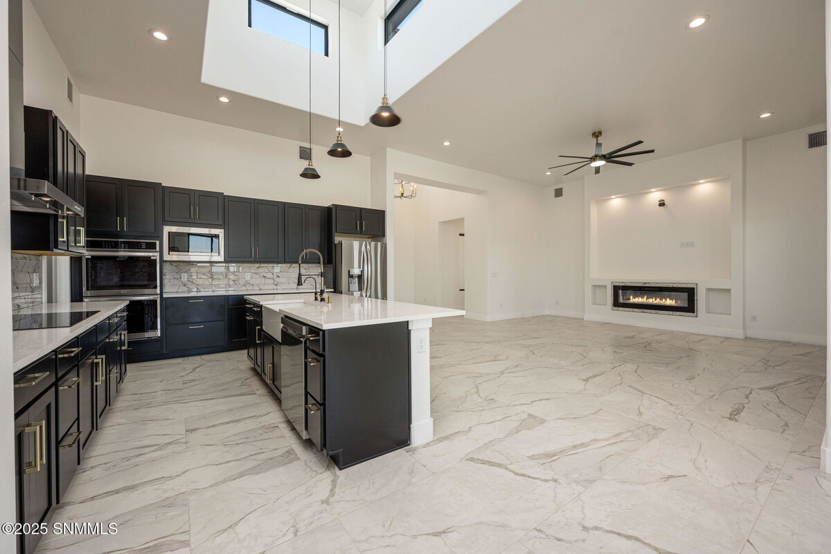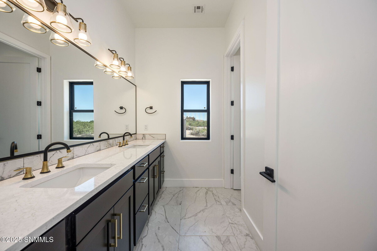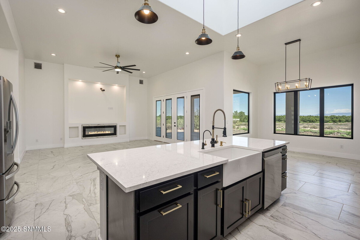 **NEW CONSTRUCTION!** This stunning southwest contemporary home is situated on one acre, offering breathtaking views of the Mesilla Valley and the Organ Mountains. The incredible open floor plan features 4 bedrooms and 2.5 baths, along with a 3-car garage and a spacious 2,919 square feet of living space. The large great room includes french doors that open up to an expansive east-facing patio, showcasing the gorgeous valley and mountain views. The gourmet chef's kitchen boasts custom cabinets, granite countertops, a butler's pantry with additional cabinets and storage, and a large island with a breakfast barperfect for entertaining. The primary suite offers stunning views of both the valley and the mountains. Its spa-like ensuite bath includes a large walk-in shower, a soaking tub, and his and her closets. Additionally, the large east-facing back patio provides a fantastic space for entertaining while enjoying the views. Some pictures virtually staged.