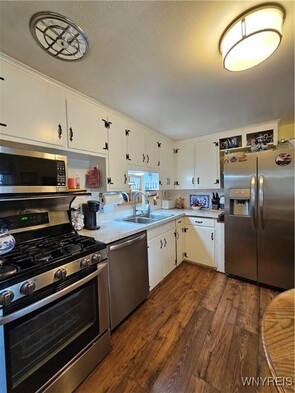 Welcome to 4771 Lake Shore! A Lovely 3 Bed 1 Bath brick and vinyl Ranch that has been wonderfully maintained w/ updated Mechanics all around!!! Through the front door you will enter a spacious Living Room & Dining Room combo that wraps around to enter the Eat in Kitchen that has more than enough space & storage in the multiple White Cabinets. The Stainless steel appliances that compliment the Kitchen will be included in sale! Fully Updated Full Bathroom will be present before making way towards the back of the home which hosts 2 generous sized Bedrooms. The 3rd bedroom has been turned into a Laundry Room for the luxury of 1st Floor Laundry but can easily be converted back to a bedroom. The Home provides the following updates ...Roof(2022)...Leaf Guard gutters...HWT(2019)...Extra Efficiency Dual Zone Boiler Heating system (2019)...All Windows (2012)...Breaker Panel (2021)...Drain Tiles (2019)...Generator for whole house (2022). New Luxury Vinyl flooring in areas. Carpets in LV & DR have hardwood under them as well. Partially Fenced yard. Detached 2.5 Garage. 220 Line. Back up sump pump. Turn around parking pad. This home sits in a Great Location w/ Lake Erie right on your doorstep & short distance to either Hamburg or Wanakah Beach!