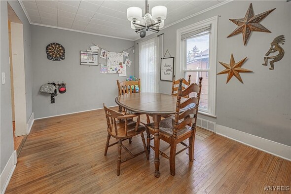 Charming 3+ bedroom home in the heart of Lockport! This spacious 1,800+ sq ft property blends classic 1900s character with great potential to make this home shine with your personal touches. Bright living spaces, large formal dining room, spacious kitchen layout, double living rooms, 1st floor bedroom / den / office, half bath, foyer and enclosed rear porch make this home perfect for everyday living. The second floor offers three comfortable bedrooms accessed by 2 separate staircases for private sleeping quarters and a full bath. Outside, enjoy the wrap around covered front porch, back yard with full fenced play area, large side yard, 2 car garage and ample off-street parking, located close to schools, shopping, parks, and all Lockport conveniences. With strong resale potential in a steadily improving neighborhood, this home is ideal for value. Bring your vision and make 160 Waterman St your next opportunitylocation, space, and charm at an attractive price! Property is sold in AS IS condition.