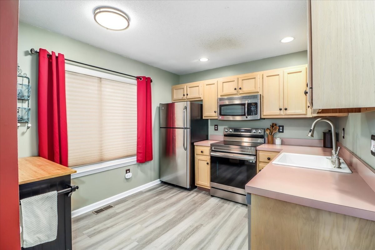 Nestled over the Bethel border you will find this spacious 2 bedroom 1.5 bath townhouse. Newly installed laminate flooring in bedrooms and kitchen, freshly painted and well maintained. This end-unit features an attached garage, privacy and generous guest parking. Move in ready to enjoy the spacious living room with a cozy fireplace and is filled with natural light. An updated kitchen with stainless steel appliances (dishwasher brand new) and ample countertop space, ideal for cooking and entertaining. The adjacent dining area includes a sliding door that leads to a private deck for grilling or chilling. The main level is completed with an updated powder room. Upstairs, the generously sized primary bedroom includes a walk-in closet and direct access to a full bathroom. The second bedroom offers plenty of closet space. Newly installed laminate floors and updated bathroom are featured. The lower level laundry room has extra room to capture for a home gym? New hot water tank, dryer vent and chimmey cleaned...all you need to do is move in. Conveniently located near both Bethel and Danbury downtowns, with easy access to shopping, dining, and I-84.