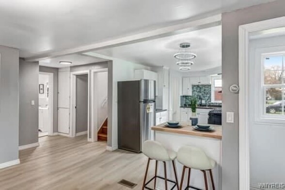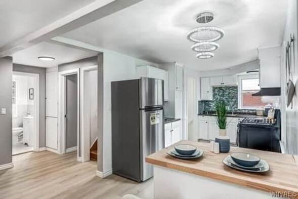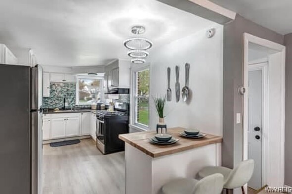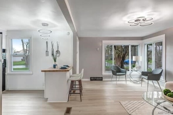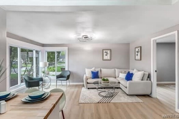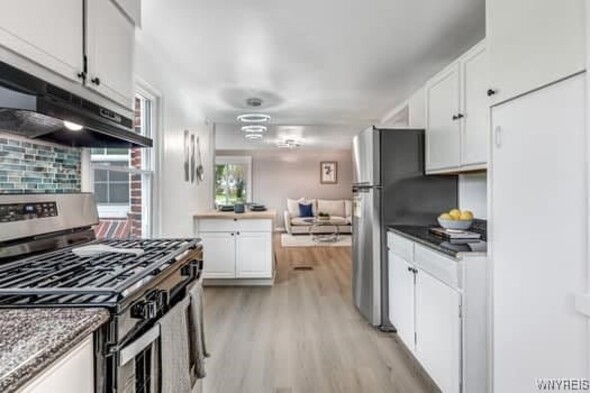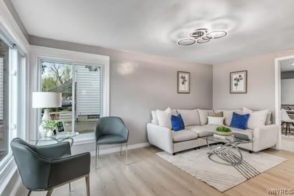 Welcome to 296 Burke Drive, a fully renovated and meticulously maintained single-family residence situated in the desirable Cleveland Hill School District in Cheektowaga. This move-in-ready home features three comfortable bedrooms, a spacious living room, an updated kitchen with a dining area, and 1.5 beautifully updated bathrooms. Recent updates include new flooring and fresh paint throughout, a new roof installed three years ago, a renovated kitchen, and tiled bathrooms. Additionally, a new hot water tank and gas heating system were both installed in 2025, ensuring modern comfort and efficiency. The property also boasts a fully heated sunroom and a full basement with abundant natural light. The exterior offers a long driveway, a one-car garage, and a generously sized, fully fenced backyard, ideal for relaxation or recreation. Conveniently located, all essential amenities, including markets, restaurants, and highway access, are less than two miles away. I invite you to explore this exceptional property, which truly has the potential to be your dream home. Square footage is different then public record per owner.