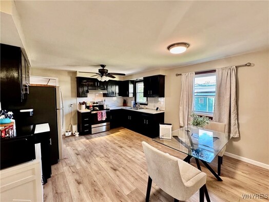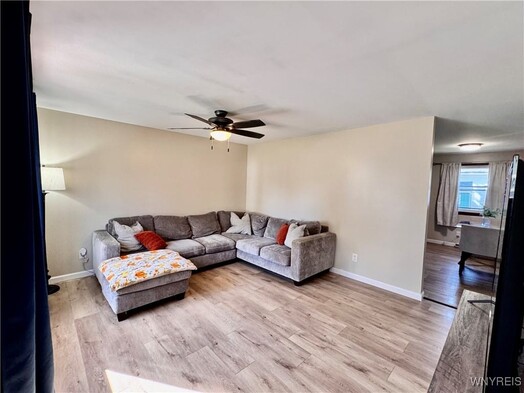 Charming ranch retreat in Blasdell, NY! This beautiful 3 bedroom, 1 bath home has a perfect blend of comfort and style. Enjoy spacious living areas, a lovely backyard and a peaceful neighborhood, just waiting for you to make it your own! New metal roof, updated flooring, and sunroom with potential to turn back to a garage. The refrigerator, microwave, washer and dryer are included. Don't miss your chance - this gem could be your new home sweet home!