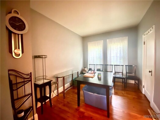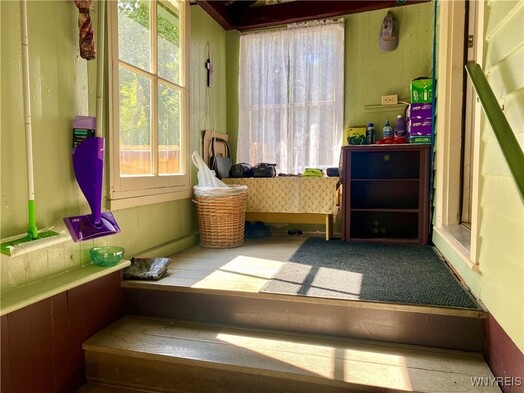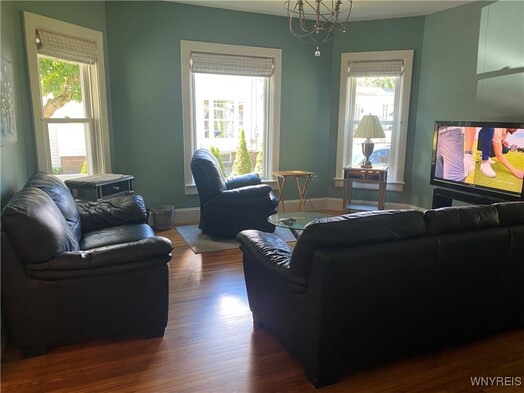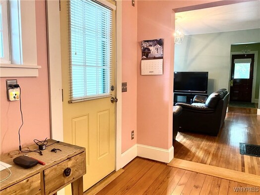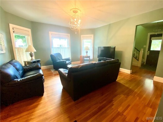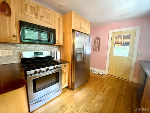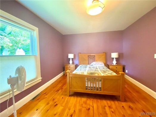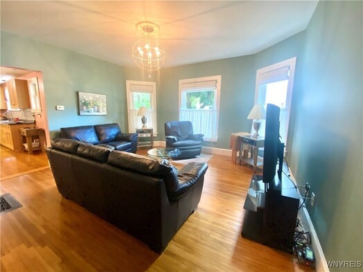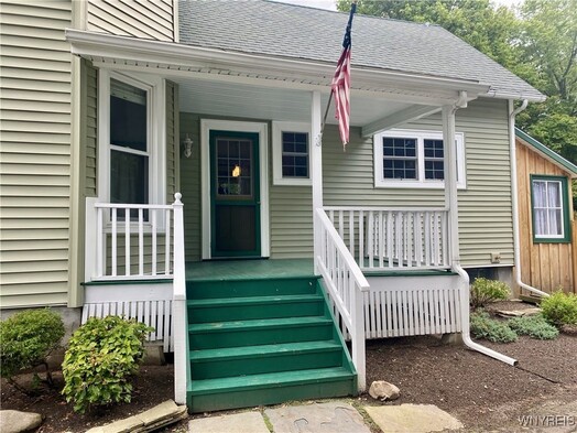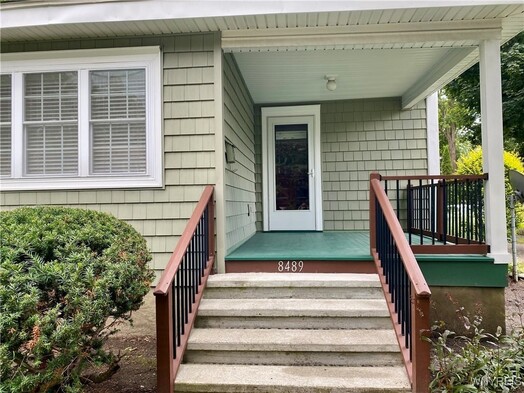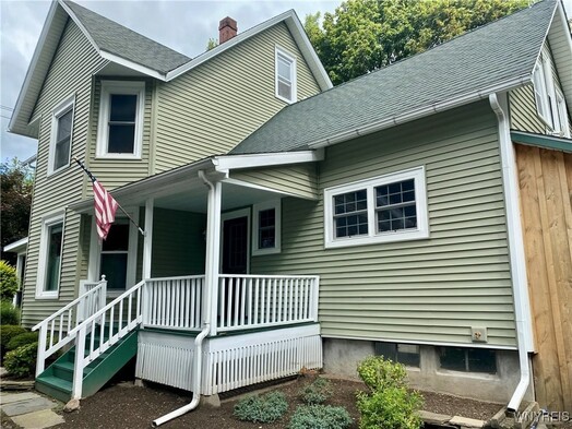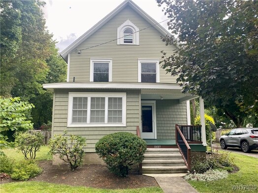 This 4 bedroom 3 bath energy efficient home has had lots of updates and has been well maintained. Fully applianced kitchen has Amish cabinets and lots of counter space. Open concept design to dining room and living room. Lots of natural light. Hardwood floors in living room. 1st Floor primary bedroom with beautiful tiled bath. Convenient 1st floor laundry. 2nd Floor has been completely updated and features 3 additional bedrooms and a full bath. Insulated walk up attic with lots of storage space. Back mudroom leads to a spacious fully fenced private yard. Shed offers outdoor storage. Relax on the side porch or watch the parade on the front porch. Minutes from NYS Thruway and the Village of Hamburg. Eden Schools. Welcome Home!