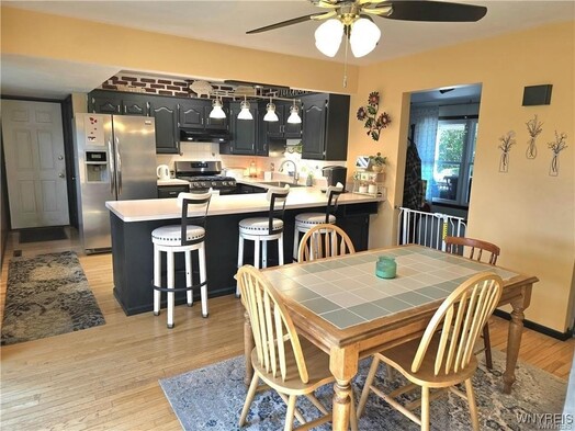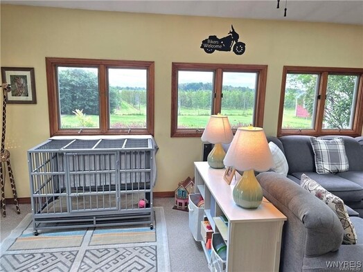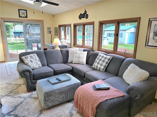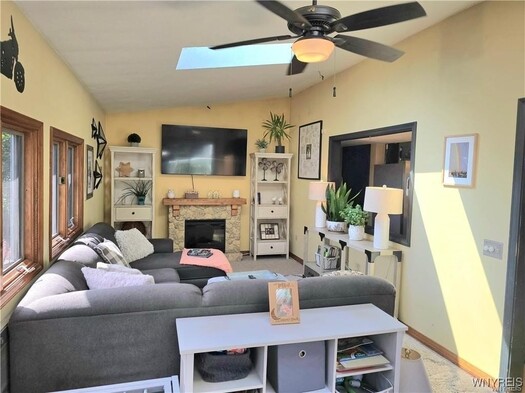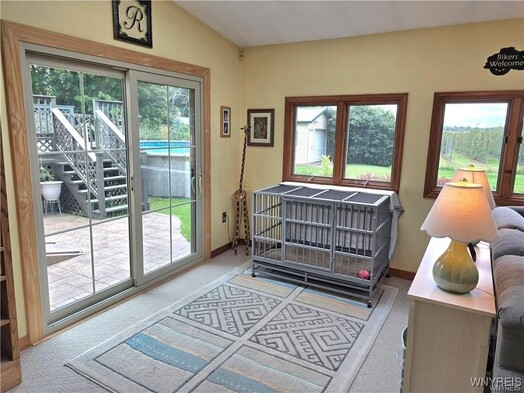 VR pricing. Sellers will consider all offers between 330,000 and 345,000 or higher. Very well maintained 3 bedroom 2 full bath, two story colonial! Starting with the inviting covered trex front porch, this home features a freshened up fully applianced kitchen (including SS refrigerator, dishwasher and stove) and beautiful cabinetry and breakfast bar, along with spacious eating area with ceiling fan. Kitchen and eating area lead into a beautiful Florida/sun room (which is now part of the house, as another family/sitting room) with ceiling fan, vaulted ceiling and skylights, along with a new sliding glass door to a stamped concrete pad, above ground pool (2023) with deck, and spacious yard w/storage shed that faces beautiful apple orchards! Formal living room with new picture windows and built-in desk/workspace. A large family room with plenty of play space featuring a brick accent wall & gas stove (NRTC). Any one of the three sitting rooms would make a great formal dining room! Spacious full bath completes the first floor. The second floor features another full bath and 3 bedrooms, including a primary bedroom with a large walk-in closet, and some natural woodwork! Central air on the first floor. Most windows have been updated! Extra large heated tandem garage (almost 50 ft long) with pull down stairs to attic, and front and back garage doors & can fit close to 3 cars! Full basement for additional storage with finished room. Driveway has recently been resurfaced.
