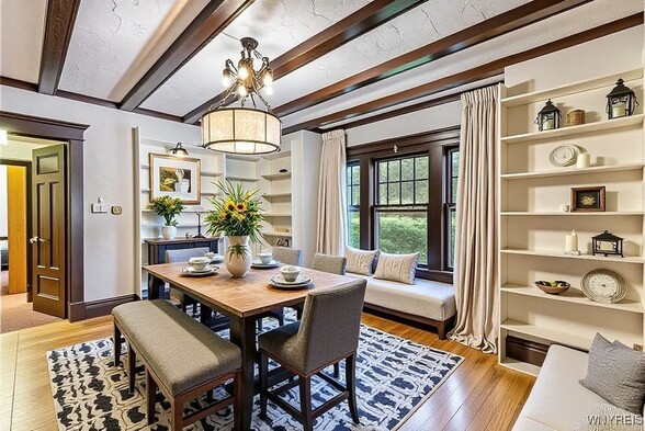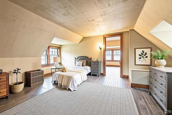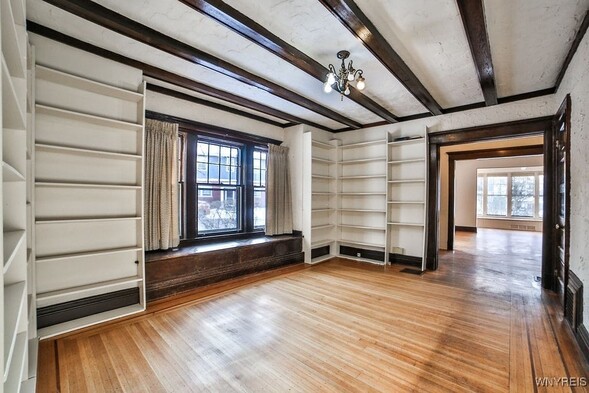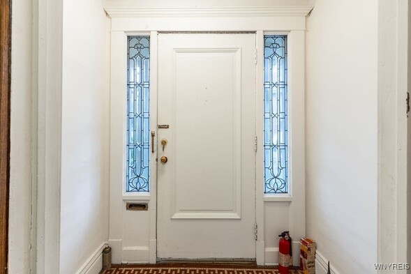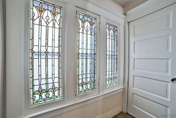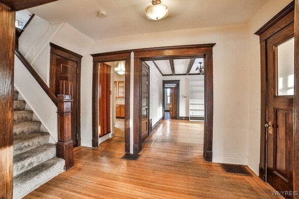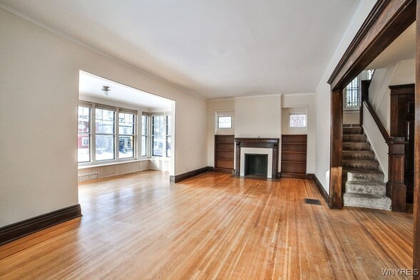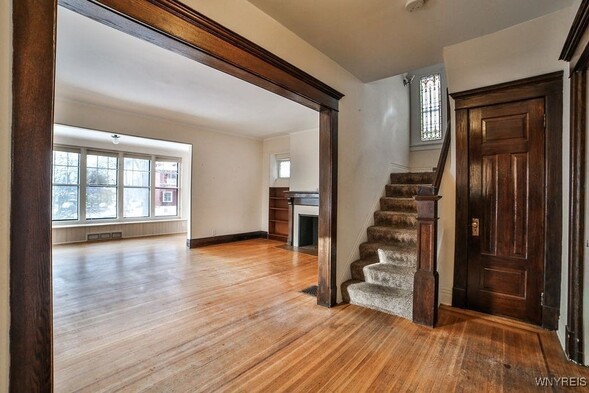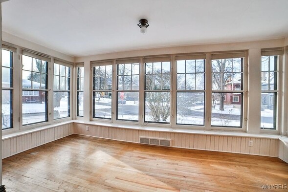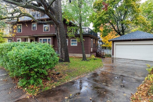 Outstanding side entrance colonial w/year-round sun room. Home features all-natural woodwork throughout, hardwood floors, generous room sizes, formal living room opens to sun room. Outstanding dining room w/coffered ceiling & bookcases, charming eat in kitchen. 1St floor bedroom w/full bath has private entrance could be in-law suite. Beautiful staircase w/leaded glass window leading to 3 spacious bedrooms w/ample closets. 1 bedroom w/French doors to porch w/rout iron railings. 3rd floor has 2 finished spaces could be bonus room, man cave, bedrooms or family room. The home is filled with charm & elegance. Mechanics roof, furnace, AC, whole house generator the past 10 years. Dry basement w/glass block windows, updated electrical. Walking distance to Delaware Park & Buffalo Zoo. Home faces Florence.
