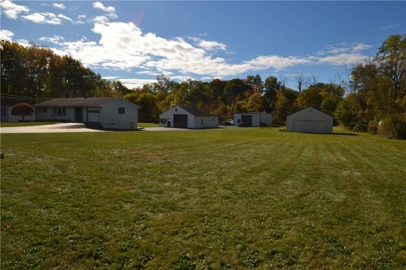 Ideal multi use property! The house is a 3 bdrm ranch offering hardwood flooring and a finished lower level. 1.5 acres located in a mixed use zoning area offering room to expand! 3 detached buildings consist of a 30 x 60 free span metal shop with a building length overhead crane and a car lift, a 30 x 45 block shop and a 2 car frame garage.Live here and operate your business, house employees or collect rental income!Possible uses include landscaping business, Service business, HVAC repair, Auto repair, light manufacturing, machine shop, home business. Ideal mini storage with room to expand! Huge paved parking area and a circular drive for easy access.* Possible owner financing and quick possession. * Also listed under Commercial MLS R1643505.