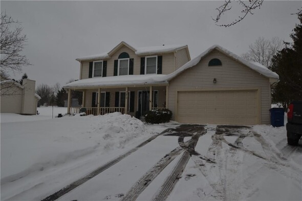 Welcome to this charming Colonial set on a spacious .57-acre lot in the sought-after Penfield School District! This well-maintained home features an updated kitchen and bath, offering modern style and functionality. Enjoy multiple living spaces including a bright living room and a cozy family room with fireplace perfect for relaxing or entertaining.Step outside to your private backyard retreat complete with a 2023 above-ground pool and deck, ideal for summer fun. Additional highlights include a covered front porch, 200-amp electrical service, and a partially finished basement with a dry sauna for year-round enjoyment.A wonderful opportunity with space, updates, and great amenities dont miss it! Delayed negotiations will take place Monday 2/23 @ 4pm. OPEN HOUSE SATURDAY 2/21 FROM 11am TO 1pm.