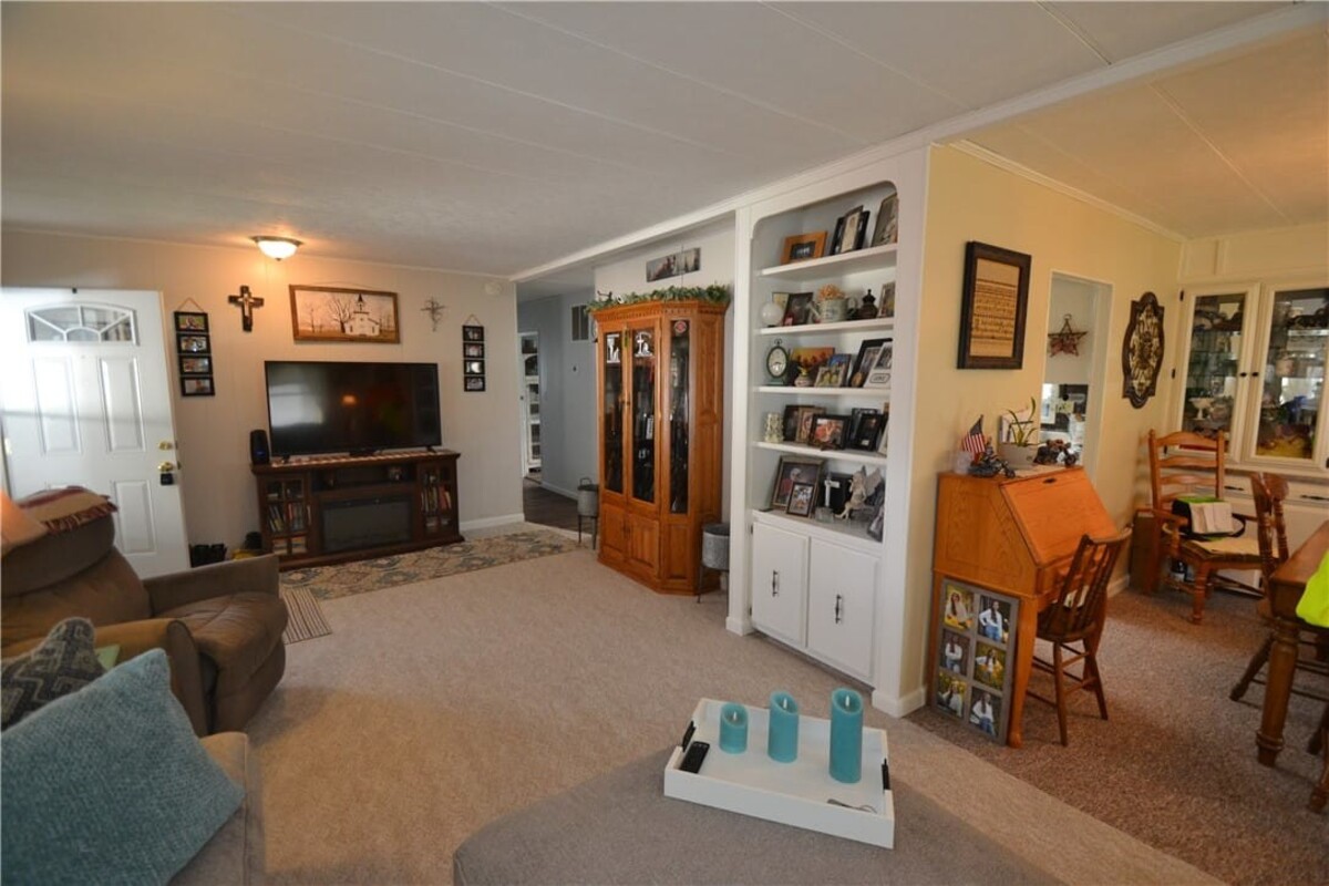 Updated double-wide in Friendly Village! Bright, spacious kitchen with double oven and all appliances included. Fresh paint and new carpet throughout. Heated all-season room ideal for entertaining. Beautifully remodeled full bath (2023) featuring a freestanding tub; owner's suite updated in 2025. New metal roof (2024) and hot water tank (2024). New washer & dryer (2024), Central A/C, vinyl replacement windows, 2-vehicle carport plus a shed for extra storage. Enjoy the community inground pool and clubhouse! $495/month lot rent includes garbage, water, sewer, road plowing, and community amenities.
