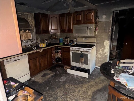 CASH ONLY!!!! The home had a fire and suffered severe smoke and fire damage and will require substantial renovation. It is a 3 bedroom Cape Cod on an almost 1/2 acre lot. The attached garage was not impacted and there is a 2nd garage at the rear of the property. When the weather and ground allows, this can be accessed from Connecting Blvd. through the park at the rear of the property. There is a new 200 Amp electric service that is currently servicing the sump pump and a working outlet in the garage. Home is being sold in as-is condition with whatever contents are remaining in the home at the time of closing. Purchaser will be responsible for any required municipal inspections. Offers due Wednesday, October 15th @ 12pm.