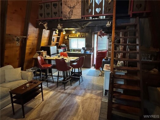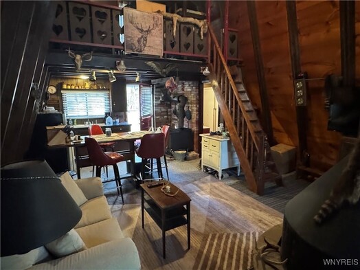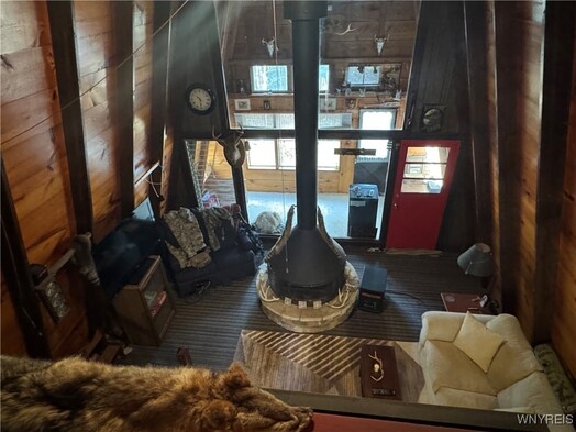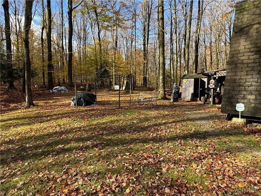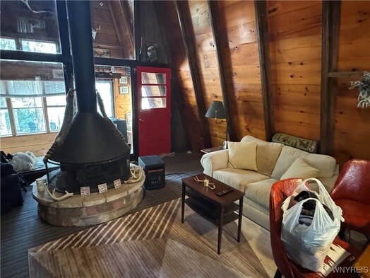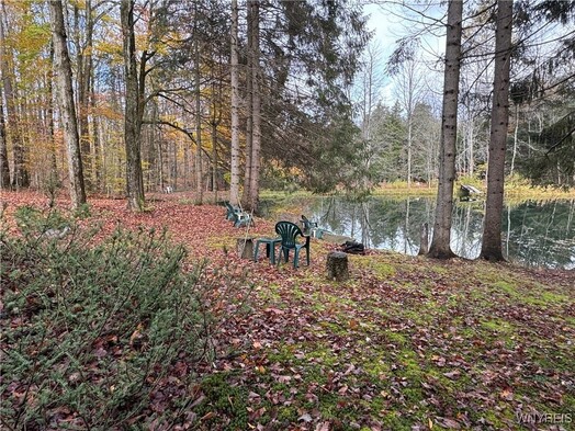 This is on a private drive, please do not go back there if you don't have an appointment. Tucked away in the woods on a private, gated road, this cozy cottage offers the perfect weekend getaway or year-round retreat. Set on nearly an acre surrounded by mature trees, youll enjoy peace, privacy, and a true connection with nature. Start your mornings in the charming sunroom, sipping coffee while overlooking your shared pond and watching the abundant wildlife. Inside, the cabin features a full kitchen with a wood-burning stove, a welcoming living room with a central fireplace, and a loft bedroom overlooking the main living space. The sunroom could easily serve as a comfortable guest room or extra sleeping area. Outside, youll find a storage shed and a separate pump house for the spring-fed water system.Located just minutes from the Village of Warsaw and a short drive to popular destinations like Silver Lake and Letchworth State Park, youll have endless opportunities for outdoor recreation, boating, hiking, and sightseeing. Conveniently situated approximately 1 hour from Buffalo, 35 minutes from East Aurora, and 25 minutes from Arcade, this hidden gem offers the ideal balance of seclusion and accessibility.Come experience the tranquility and natural beauty of country living at 3890 Weber Roadyour woodland escape awaits!Sq/Ft adjusted to be more reflective of the size of the cabin.