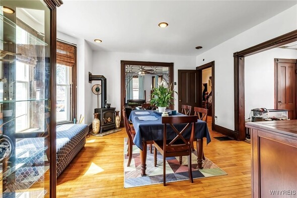 This late 1800's Victorian is waiting for you! This property has tons of space with over 2200 sq. ft., 3 beds with a bonus office, 1.5 baths, lots of original wood work and also original pocket doors. Kitchen has all new cabinets with an island and a breakfast bar, formal dining with a gas fireplace. A 2-car garage out back and tons of storage next to the garage and also a shed. The property is also a stones throw away from Downtown Lockport and close to places like the new Big Ditch Brewing Co., Cornerstone Arena, The Palace Theatre, Lockport Public Library, a couple of banks and Niagara County Produce's Lockport location. Come check it out!