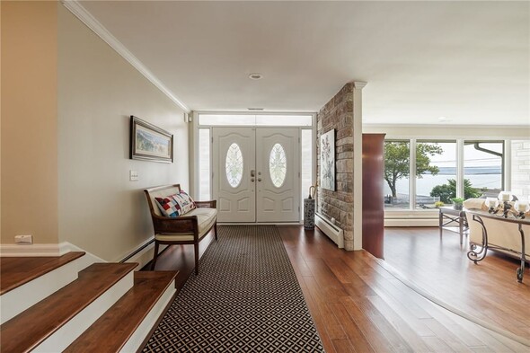 CANANDAIGUA LAKEFRONT BEAUTY JUST HIT THE MARKET Sunsets here are a daily show, mornings glow with golden light, and soon the rhythm of the water will be the music in your head.Originally built in 1963 by Marvin Sands , founder of Constellation Brands, this home has long been celebrated as one of the many jewels of Canandaigua lake and that honor still rings true today. With a rich history, timeless architecture, and every modern upgrade, this property is a rare offering. Lovingly cared for by its current owners, pride of ownership is evident in every detail. There is nothing to do here new Anderson windows, custom blinds, gleaming hardwood floors, new mechanicals, extensive interior and exterior updated drainage, a new stone rear patio, and even a brand new dock with so much more.. Every improvement was done with quality and longevity in mind. The 5 Bedroom, 3.5 Bathroom, Split level is best described as offering formal elegance combined with relaxed lake living and filled with natural light. Sweeping lake views frame the main level, anchored by a double-sided fireplace between the great room and living room. The newly designed, completely renovated kitchen is as functional as it is beautiful thoughtfully laid out with premium finishes for cooking and entertaining, while the great room invites everyday comfort. Upstairs, four spacious bedrooms include a private primary suite situated at the rear of the home, overlooking original stone walls and lush landscape. The lower level offers a versatile flex space currently used as a private office. could easily convert to a guest suite w/bedroom, sitting area and full bath. Also included in the lower level laundry/ storage. The basement level is currently used for a work out room. Set on over half an acre, the deep private lot includes a gated fenced yard, perfect for pets or play. Enjoy 100 feet of private lakefront with a boathouse, boat station, and your new dock for endless waterfront adventures. This is more than a home3690 West Lake Road offers a lifetime of Canandaiuga Lake Living