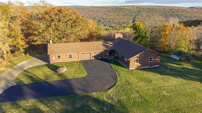 THIS NAPLES BEAUTY JUST HIT THE MARKET !!Nestled in the hills overlooking the valleys of Naples 10 +/- private acres of peace, nature, and panoramic views.This beautifully updated 4-bedroom, 2 full and 2 half-bath home offers single-floor living at its best. The open layout features a spacious great room, dining area, and modern kitchen with newer appliancesall designed to capture the stunning valley views. The primary suite provides comfort and privacy, while the laundry room with a convenient half bath adds everyday practicality.Step out onto the rear deck with a hot tub and take in sunsets that stretch for miles. The home has been completely redone within the last five yearsincluding roof, mechanicals, and appliancesso you can move right in with peace of mind.A two-car attached garage is complemented by a second two-car garage with a huge workshop, separate entrance, half bath, water, and electricperfect for hobbies, projects, or a home business. The large driveway provides easy access and plenty of parking.The full basement has been started for additional living space, with framed walls, new flooring, and a plumbed-in full bath, fireplace, and two additional bedrooms plannedoffering up to 1,500 more square feet of potential finished area.Turn-key and ready to enjoy, this property is ideal for your growing family, an investor, or an entrepreneur looking for space, flexibility, and privacy. Whether youre soaking in the hot tub, relaxing on the deck, or exploring the acreage around you, youll find peace, comfort, and Finger Lakes beauty at every turn.The property is on delayed showings and negotiations and first showings will be Saturday 10/18/2025 at 10AM. Offers to be submitted by Thursday 10/23/2025 by noon.