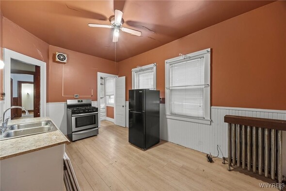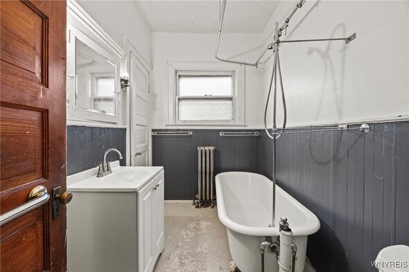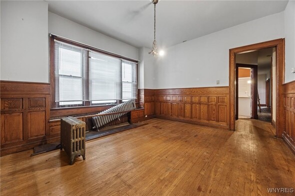 287 Riley Street presents a solid renovation opportunity in Buffalo. This 3/3 bedroom double offers one bathroom per unit, with hardwood floors and original woodwork throughout. The home will need updates and repairs, but it has great bones to work with. Features include a covered front porch, upper balcony, and off-street parking. Ideal for investors or buyers looking for a project with potential. Offers will be reviewed as they come in.