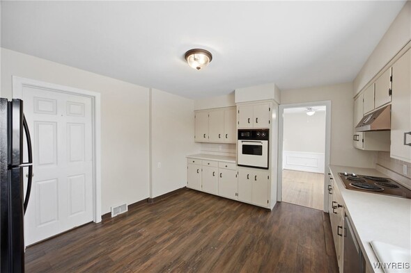 Welcome to 149 Amsterdam in Tonawanda a well-maintained 3-bedroom, 1-bath ranch on a corner lot featuring hardwood floors throughout and some updated windows from around 2020. Enjoy the ease of one-floor living and great curb appeal with newer siding from 2019. The home offers a solid set of mechanicals, including a furnace from approximately 2016, a 2016 hot water tank, central A/C from 2017, some glass block windows in the basement, and an unused oil tank that will remain. Outside, the fully fenced yard provides privacy and versatility with a covered patio, an additional patio deck, and a 1-car detached garage creating a great space for relaxing, entertaining, or everyday convenience.