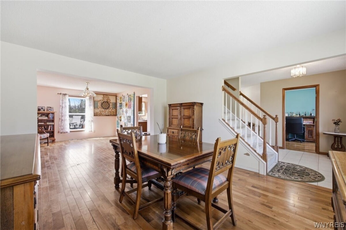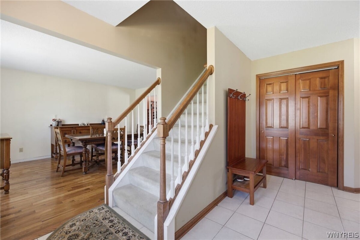 Set on a private cul-de-sac backing to Orchard Park Country Club, this 4-bedroom, 2.5-bath colonial offers a rare combination of location, space, and opportunity. A concrete driveway and covered front entry add to the homes overall functionality and curb appeal. Inside, custom engineered hardwood floors span the first floor, while the family room features a gas insert fireplace that anchors the space. The private backyard is a standout feature, complete with an in-ground pool and direct access from the home through a sliding glass doorcreating an easy flow for everyday living and entertaining. The layout offers flexibility and comfort with four generously sized bedrooms, including a primary suite with a large walk-in closet and an updated en suite bath with a tile shower. The basement adds even more potential, featuring bulkhead doors for egress and currently set up as a woodworking workshopready to be reimagined into additional finished living space if desired. With solid features, a sought-after setting, and room to make it your own over time, this property presents a great opportunity for both immediate enjoyment and long-term value.Your house hunting search might end right here!