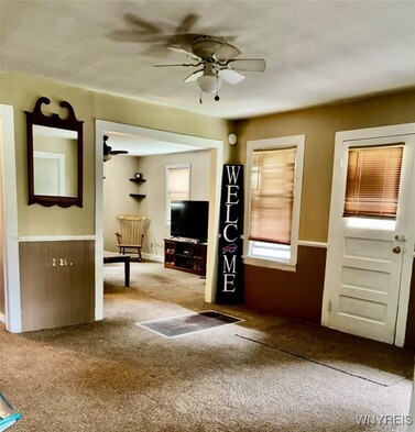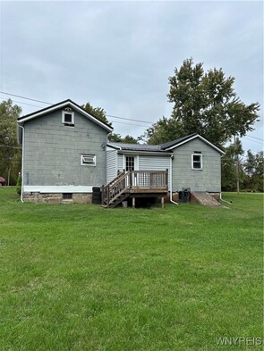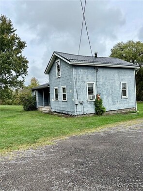 Nearly an acre lot! Mature trees border this affordable property! House in need of work but many big items done: Metal Roof 5-10 yrs ago- windows replaced 15 yrs ago-gutters and soffits 5-10 yrs ago! Generous size kitchen with adjacent area for first floor laundry-next to this is a 12 x 11 storage/mud room!-First floor continues with plush carpet (5 yrs) in Living room/dining room or media rm and a first floor bedroom -full bath on this floor. Berber carpet on steps leading to second floor with 23 x 16 bedroom (steps go into middle of rm ) and features recessed lights...basement with Bilco door access-garage in need of repair, currently used for storage only.