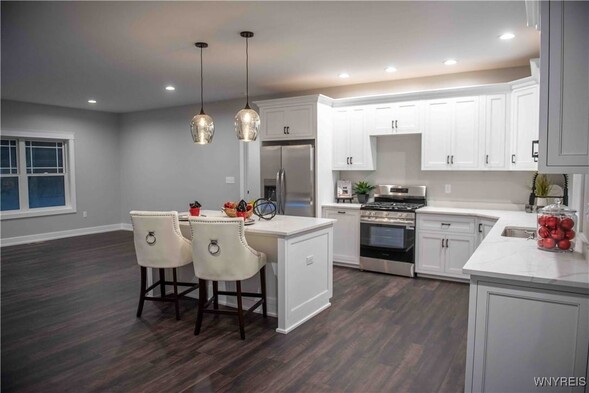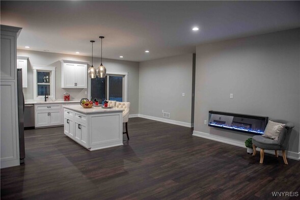 THIS INVITING OPEN CONCEPT NEW BUILD RANCH IS APPROX 99% COMPLETE! SELLER TO ADD A LANDSCAPING DESIGN TO THE FRONT EXTERIOR AND COMPLETE PILLARS AT FRONT AND BACK OF HOME! 9' CEILINGS ADD DRAMA AND ENHANCE THE SENSE OF LIGHT AND SPACE. STUNNING CUSTOM BUILT CABINETRY WITH SOFT CLOSE /DOVE TAIL FEATURES THE QUARTZ COUNTERS ARE GLEAMING! WINE RACK-SPICE RACK-DOUBLE GARBAGE CABINET. ANDERSON WINDOWS/ KOHLER PLUMBING FIXTURES/MOHAWK RICH DARK LUXURY VINYL PLANK FLOORING/TRENDY MODERN ELECTRIC FIREPLACE /FIRST FLOOR LAUNDRY/LOTS OF RECESSED LIGHTS PLUS STYLISH FIXTURE CHOICES IN KITCHEN AND BATHS! COVERED PATIO IN REAR OVERLOOKS A HALF+ ACRE LOTBORDERED BY TREES- FULL BASEMENT WITH EGRESS WINDOW PROVIDES FUTURE POSSIBILITIES OF ADDING MORE VALUABLE LIVING SPACE!