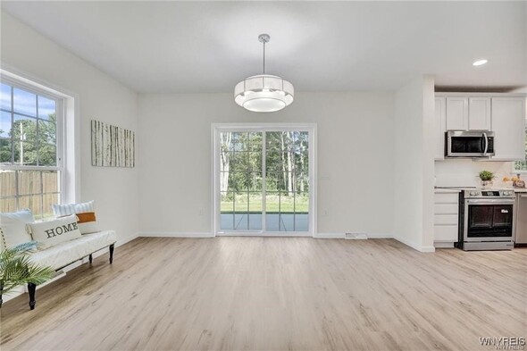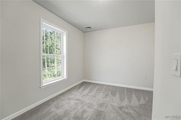 This pristine new build combines traditional elegance with modern convenience! The exterior features a classic facade with a full front porch that invites you to relax and enjoy the wooded view across the street. The landscaping is added in the front/ lawn seeded and waiting for your mower! Large living room opens to 20' long kitchen featuring white cabinetry, quarts counters, fully applianced w/new Frigidaire brand! 6' work island/brkfst bar, double pantry closet and luxury vinyl plank flooring in both rooms. Second floor has three bedrooms with plush carpet. The primary bedroom has its own bath with walk in shower and huge double door closet! Wait till you see huge 20 x 16 bonus room/carpeted and drywalled over garage but not included in sq ft-could be wonderful extra storage or add heat and the possibilities could be endless. Two entry ways to basement-thru garage and kitchen area- basement also has egress window so would be valuable space for potential future finished living area. Builder added a quality concrete patio w/access from kitchen sliding door sliding door! Elegant wrought iron /craftsman style railings at staircase, trendy lighting choices in kitchen and baths, cultured marbled tops with soft grey vanities and stylish mirrors! Nearby lake Erie for more waterfront fun at restaurants, beaches, parks!