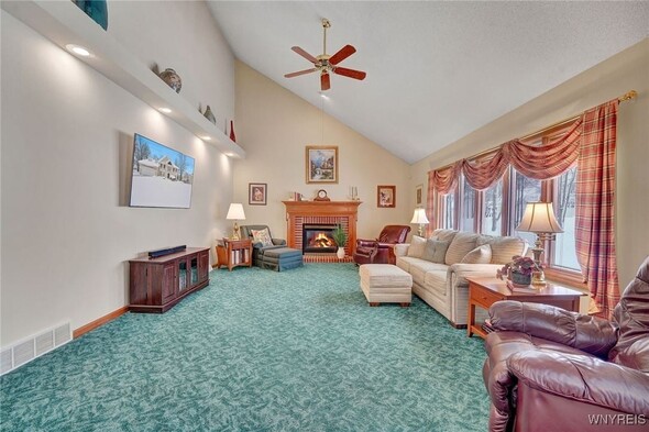 IMAGINE ARRIVING AT A DISTINCTIVE LUXURY HOME SET GRACIOUSLY ON A LOVELY TREED LOT IN A QUIET SUBDIVISION! THE HOME HAS A WELCOMING FRONT ENTRY FRAMED BY STATLEY PILLARS GIVING THE HOME AN ARCHITECURAL PRESENCE. MORE DETAILS WERE ADDED WITH DORMER STYLE WINDOWS OVER THE GARAGE. QUALITY BUILT BY MARRANO HOMES FEATURING PELLA WINDOWS/BLINDS IN BETWEEN GLASS IN MANY ROOMS! ELEGANT TWO STORY FOYER WITH SPARKLING CHANDELIER, LEADS TO DESIRABLE DOUBLE DOOR ENTRY TO PRVIATE DEN/HOME OFFICE! GORGEOUS CHERRY CABINETRY WITH NEWER ('24) CORIAN COUNTERTOPS. PERFECT MEAL PREP HAPPENS AT THE ISLAND, MOST APPLIANCES STAY. LARGE 21 X 15 FAMILY ROOM, SOARING CATHEDRAL CEILING /PLANT LEDGE, GAS FIREPLACE. 1ST FL. LAUNDRY, MUD ROOM OFF GARAGE AND ADJACENT HALF BATH. ENTERTAING CONTINUES IN THE FORMAL DINING ROOM AND LIVING ROOM WITH PLUSH CARPET. 4 GENEROUS SIZE BDRMS (PRIMARY SUITE WITH CATHEDRAL CEILING /GLAMOUR BATH W/JETTED TUB + WALK IN SHOWER AND WALK IN CLOSET + ADDITIONAL DOUBLE CLOSET) LOFT AREA OVERLOOKS FAMILY ROOM. FULL BASEMENT -HIGHLY MAINTAINED FURNACE AND CENTRAL AIR APPROX 11 YRS -FULL HOUSE GENERATOR 6YRS APPROX - SCENIC TREED BACKYARD WITH SHED FOR MORE STORAGE AND CONCRETE PATIO-SELLER DESIRES HIGHEST AND BEST OFFERS. SELLER NEEDS FLEXIBILITY WITH END OF MARCH CLOSING.