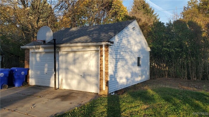 Welcome to this two-unit on a double lot in West Seneca. The lower offers two bedrooms, one with a walk-in closet. There is a hallway that has two good-sized closets and built-in cabinets for all your storage needs. The kitchen has space for a table, and the apartment also has a nicely sized dining room, which leads to the large living room. The living room has a large picture window and access to the front door. This unit has a forced air furnace and central air. The upper has two bedrooms, one of which has a walk-in closet. The other has double closets. No shortage of storage space for anyone in either apartment. The kitchen provides a nice area for a table, and the good-sized living room is centrally located in the middle of the apartment. This unit has baseboard heat. The large yard with mature trees provides plenty of green space as well as a concrete driveway that opens to a double-wide in front of the two-car detached garage. It even has a built-in basketball hoop for your summer enjoyment. Some updates include new electric service with 3 meters, new garage doors and a sump pump, both hot water tanks in 2025, and kitchen floors.