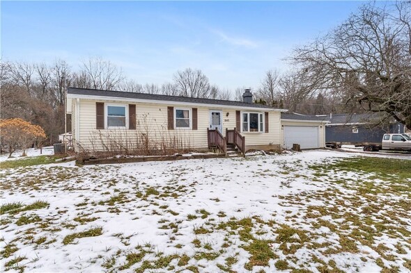 Cozy ranch home on beautiful Cork Road in Victor. Close to shopping mall, walking paths, restaurants. Location makes you feel far away. Roof is approximately 5 years old. Endless ideas for the basement with built in bar. Laundry is in the basement in its own room. Tax records indicate 3 bedrooms. However, previous owners removed a wall in the main bedroom making this a 2 bedroom. To convert back into 3 bedroom, the wall would have to be put back up and the door installed. Fireplace is wood and is transferred as is. Sellers have used it but they now have a toddler and have not this year. Please watch out for 3 kitty cats in the house. They are all friendly (black one will follow you around). Please do not touch the blue tongue lizzard or tap on his cage. You can admire him (he loves that) but no touching please. Sellers must find suitable housing before closing. Actively looking.