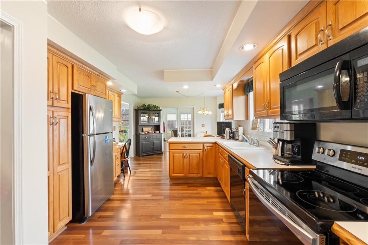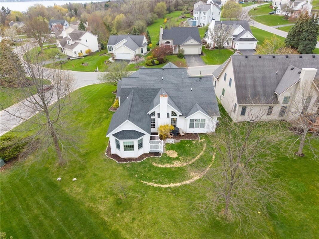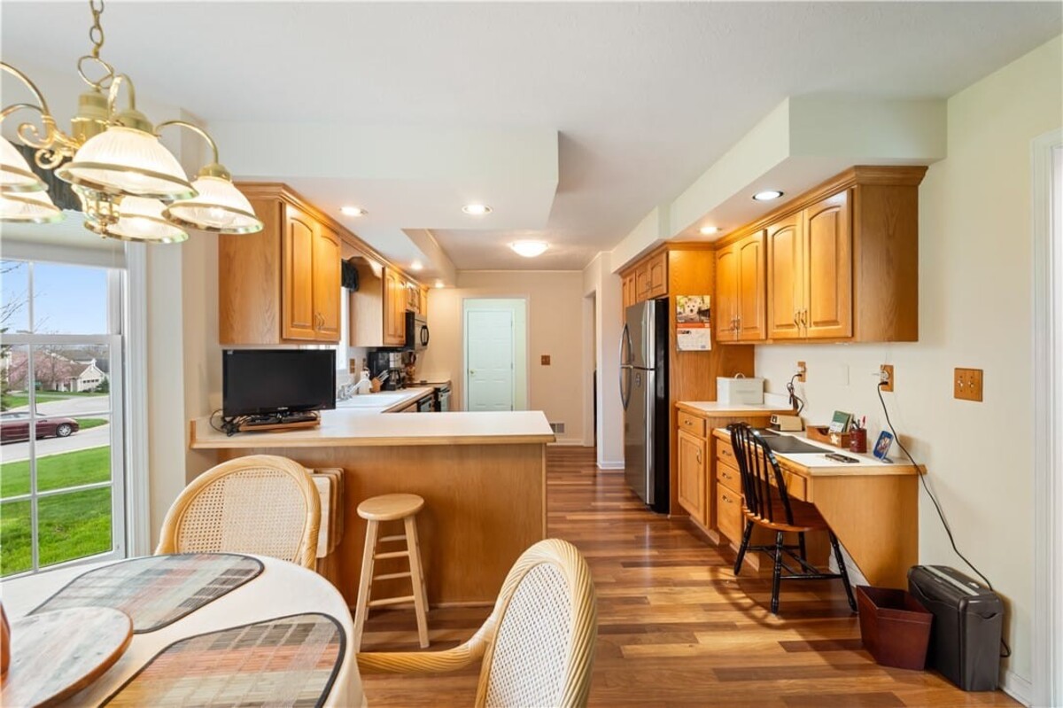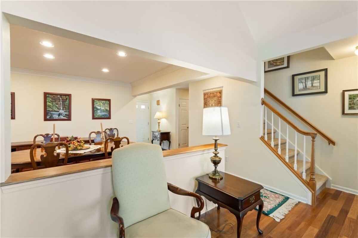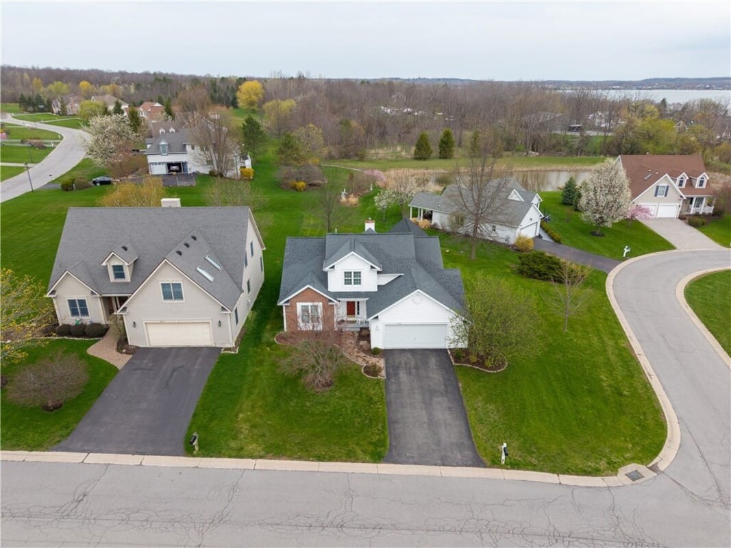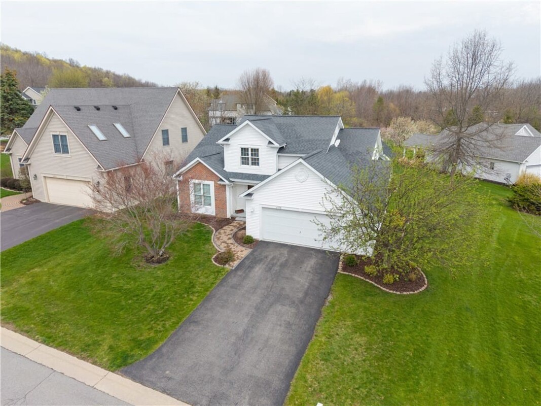 Welcome to this inviting 3 bedroom, 3 full bath beautiful home. Enjoy first floor living with extra bedroom and bathroom on second floor for guests. Beautiful bright livingroom, pop out windows in kitchen/sitting area where you can enjoy a cup of morning coffee and enjoy the view. Beautiful new 4 season room off the kitchen with gas fireplace (additional 260 sq. feet). The formal living room features a cozy fireplace that flows into a spacious dining room and kitchen perfect for holiday gatherings. Vaulted ceilings and ample windows bring in the natural light. Stunning teak hardwood floors. On demand hotwater tank. Kitchen offers spacious counterspae for cooking and baking. Primary bedroom offers its own full bathroom on the first floor. Enoy the space of a 2 story home with all you need on one floor. The 2 car garage gives you not only space for 2 cars but added room for storage and direct access into the home. HOA covers mowing and treating of common grounds, maintain the ponds.