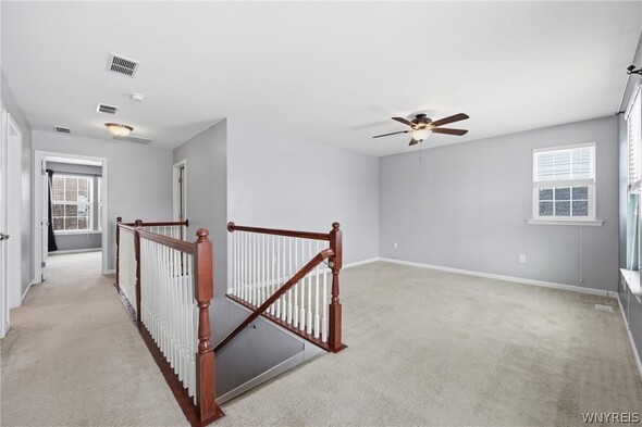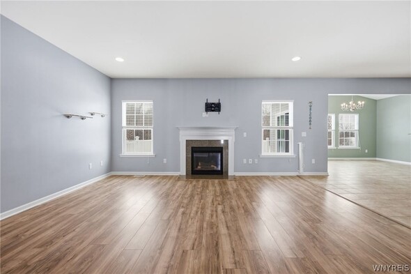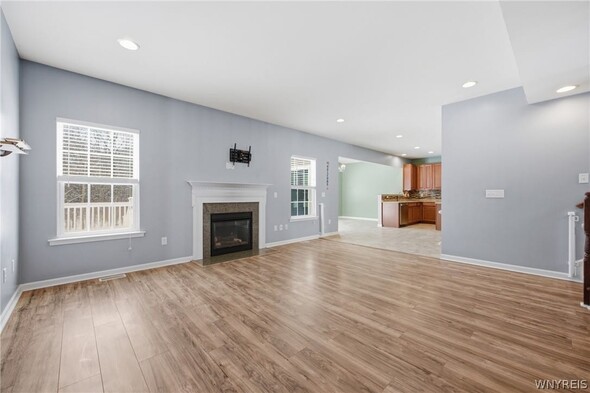 Welcome to this beautifully maintained home nestled in the highly sought-after Wheatfield Lakes community. From the moment you arrive, the inviting front porch sets the tone the perfect place to relax with a morning coffee or unwind in the evening while enjoying the peaceful neighborhood surroundings. Step inside to a bright and versatile front room that can easily serve as a formal dining room, family room, home office, or den a flexible space designed to fit your lifestyle. The cozy living room features beautiful flooring and a warm gas fireplace, creating a comfortable gathering space for family and friends. The kitchen is both stylish and functional, offering granite countertops, a center island, breakfast bar, and a spacious walk-in pantry tucked behind an elegant frosted glass door. Just off the kitchen, the sun-filled morning room provides the perfect spot for casual dining while overlooking the beautifully landscaped backyard. Upstairs, a generous loft area offers additional living space that can be used as a second family room, office, or recreation area. The primary suite provides a peaceful retreat with a walk-in closet and an en-suite bath featuring double sinks and a walk-in shower. 2 additional bedrooms and a full bath complete the 2nd floor. The finished basement adds even more living space, including a 4th bedroom with an egress window and closet, a large bonus or entertainment area, a separate laundry room, and a utility/storage room. The finished space adds 657 extra sq ft to the home. Additional highlights include a new hot water tank 2025, convenient mudroom entry from the garage, loft storage in the garage, and plenty of functional space throughout the home. Step outside and enjoy your own private outdoor retreat featuring a spacious deck with a retractable awning and a lower patio perfect for entertaining guests, summer barbecues, or simply relaxing and enjoying the beautifully landscaped backyard. Located in the Niagara Wheatfield School District with Errick Road Elementary, this wonderful home offers comfort, space, and a welcoming neighborhood setting. Welcome to your new home!!
