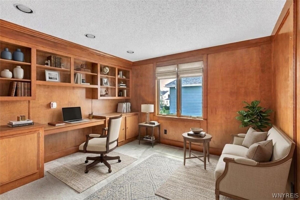 Welcome to this beautifully maintained home built by Julis Blum Builders, known for exceptional craftsmanship. This original owner home features attractive trim work & numerous updates throughout. The spacious foyer with hardwood floors leads to an updated kitchen with a large island, granite countertops, & double ovens (2024). The kitchen opens to a large family room with a fireplace, creating a perfect space for everyday living and entertaining. The first floor also includes a mudroom & laundry room, a bright living room with a bay window & a formal dining room. The primary bedroom features a walk-in closet & an updated bathroom with heated floors. A second-floor den/office with built-in cabinetry provides an ideal workspace. All bedrooms are generously sized with ample closet space. Finished room in lower level. Recent updates include roof (2020), two hot water heaters (2021), double ovens (2024), & a wide concrete driveway (2017). Step outside to enjoy the stunning backyard featuring a stamped concrete patio & a gorgeous Swimco in-ground liner pool with heater, diving board, & slide. Additional features include a whole-house generator, central vac, & all appliances are included. Located in the highly rated Williamsville School District, dont miss this one! Any offers are due 4/15 at noon.