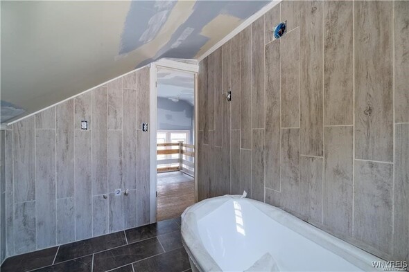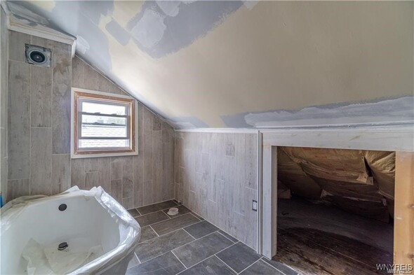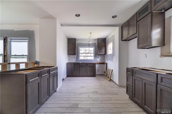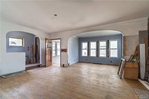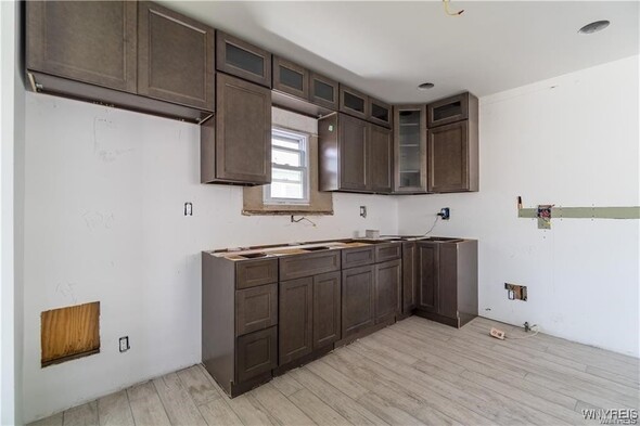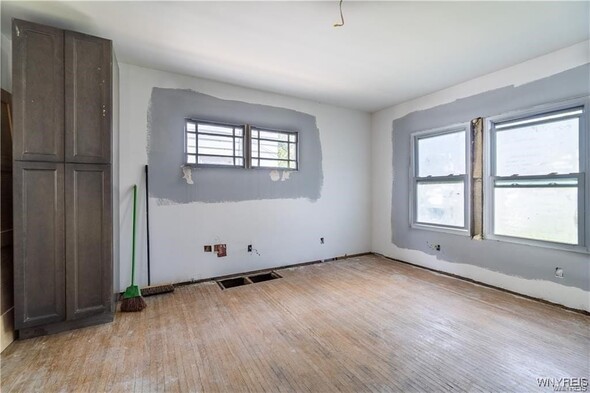 VRP- Owner will consider offers from $145,000 and $175,000 or higher. Welcome to your future dream home in a quaint neighborhood in Kenmore! This 4 bedroom, 2 bathroom house has been stripped down to the studs and just needs to be completed. The renovation has included new insulation in the attic and window cavities, exterior walls, and a moisture barrier, all new wiring, including boxes, outlets, switches, and a new 220 box, as well as canned ceiling lights and all new trim and baseboard. The kitchen has a beautiful tile floor and cabinets, while the 2nd floor has refinished hardwoods and new interior doors installed throughout. The 3rd floor bathroom amenities need to be hooked up. Many materials are included to complete the job, such as exterior doors, vanities, toilets, and other items.