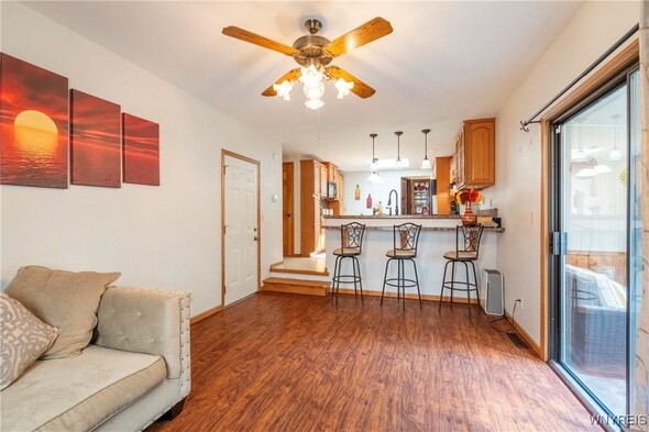 Welcome to this meticulously maintained ranch-style home, a true gem in a prime location! This property boasts an updated kitchen featuring a spacious island & an abundance of cabinet space, perfect for culinary enthusiasts. Enjoy the added bonus of 255 sq. ft. of addtl living space in 3-season room that offers a seamless connection to the fully fenced backyardand modified roof (4yrs old). Step inside to find updates throughout, including stylish laminated flooring that enhances the home's appeal. The bathroom has been tastefully updated with tile and a sleek vanity, ensuring both comfort and style. With three generous bedrooms, this home provides ample space for families or those looking for a home office. Located conveniently close to shopping and bus lines, this property is not only a great opportunity but also priced to sell! Dont miss out on this fantastic listing discover the perfect blend of comfort and convenience!