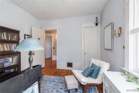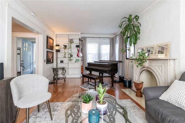 VRP pricing: owner will consider offers between $450,000 to $495,000 or higher.This exceptional 4-bedrm, 2.5-bath home offers over 2,000 sqft of beautifully finished living space across 3 floors. The 1st floor featuresnewly remodeled custom kitchenw granite countertops, functional island, ceiling-height cabinets, built-in microwave drawer, & durable Blanco Silgranit composite sink. A bright & invitingformal dining rmis perfect for entertaining, while the spacious living rm highlights theoriginal marble fireplace, built-in shelving, & gleaming hardwood floors. Upstairs, the 2nd floor offers3 generously sized bedrms and 2 full baths. The fully finished 3rd floor adds remarkable versatility w 3 additional rms, including 4th bedrm &soundproof music room. Recent updates includenew hot water tank (2024), 4-camera security system, & Generac generator. Outdoors, enjoy aquiet, partially fenced yard w stamped concrete patio, plusrare two-car garage w storage above. Present owner has a mid sized car and has no issues getting in and out of driveway! The new Trex-covered front porch adds even more curb appeal. Located just steps from the vibrant shopping & dining of Elmwood Village, this home is truly amust-see gem in a prime location!