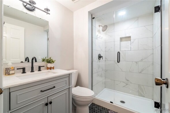 Value Range Pricing - Owner will consider offers between $325,000- $350,000 or higher. Welcome to this beautifully updated ranch-style home that combines modern comfort with timeless charm! This property boasts impressive features, including a new gutter system (2025) and garage door (2025). Cozy up by the brand-new wood-burning fireplace (2023) in the inviting living room, which also features built-in bookshelves and plantation shutters. Step outside to enjoy the meticulously landscaped yard, complete with a new fence (2021) for added privacy. Inside, you'll find new flooring throughout (2020) and fresh paint that enhances the home's bright and airy feel. The kitchen has been tastefully updated (2020) with sleek granite countertops, modern appliances, and stylish lighting. Retreat to the master bedroom with an updated en-suite bathroom (2021), while the full bathroom and half bathroom have also been beautifully renovated (2021 & 2022). The basement offers new flooring (2021), fresh paint, a bar area, and ample storage space. This fantastic home is a rare finddon't miss your chance to make it yours! Offers will be reviewed on 9/26/25 at 10 am.