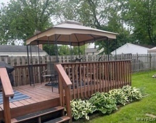 VRP- owner will consider offers between $275,000-$300,000 or higher. Welcome to your dream home in the heart of Tonawanda! This beautifully updated property boasts a modern kitchen featuring quartz countertops, stylish backsplash, & sleek sink, perfect for culinary enthusiasts. The inviting interior has been freshly painted & tastefully decorated, creating a warm & welcoming atmosphere throughout. The partially finished basement, completed in 2020, offers versatile space w glass block windows, ideal for extra room or home office. Step outside to enjoy the updated exterior, including new roof (2017), replaced exterior doors(2017), & new deck flooring (2017) thats perfect for entertaining. The newly updated concrete garage floor (2025), along w the refreshed walkway & patio, enhances the outdoor appeal. The garage features updated siding, gutters, & windows, ensuring both functionality & aesthetic charm. The owner is open to leaving the refrigerator & stove, making this home move-in ready. Dont miss this opportunity to own a beautifully maintained home in a prime location! Showings begin 10/18/25 at Open House 11am-1pm. Offers will be reviewed on 10/23/25 at 10 am.