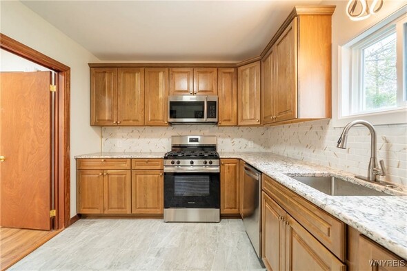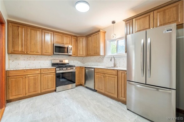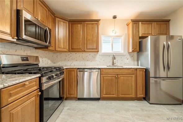 Owner will consider all offers between $245,000-$275,000 or more on this completely reimagined 4-bedroom, 1.5-bath home in Buffalos University Heights. Every detail is brand new- from top to bottom yet the character and charm remain. Step inside to refinished hardwood floors and a freshly painted interior accentuated by modern lighting throughout. The stunning kitchen features granite countertops, sleek tile backsplash, brand new appliances, and maple cabinetry. Both full and half baths are fully renovated with tiled walls, new vanities, toilets, and flooring. Energy-efficient new windows bring in natural light, highlighting the homes thoughtful craftsmanship. Outside, a one-car garage with a brand new roof adds convenience, complemented by an updated electrical panel and attention to every finish. This move-in-ready property blends quality construction with modern designperfect for buyers seeking style and reliability just minutes from UB, Main Street dining, and city amenities. Showings begin immediately. Offers due Tuesday 10/28 at 10am.