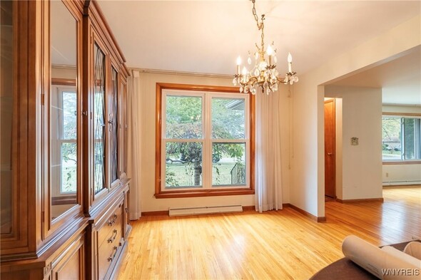 VRP-Owners will consider offers between $265,000-$325,000 or higher on this hard-to-find brick ranch in the heart of Williamsville! This charming 3-bedroom home features beautiful hardwood floors, a bright ceramic-tiled kitchen and bath, and a spacious finished basement complete with a dry bar and convenient half bath. Enjoy extra living space in the inviting three-season room overlooking the fully fenced yard. A detached two-car garage provides ample storage and parking. With solid mechanics, a battery backup sump pump, and close proximity to schools, shopping, and dining, this home offers both comfort and convenience. Dont miss this opportunity to own a well-maintained ranch with great potential in a sought-after location! Open House 10/25/25 11am-1pm and 10/29/25 5pm-7pm. Offers will be reviewed on October 31st at 10:00 am.