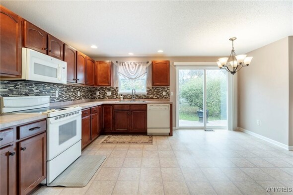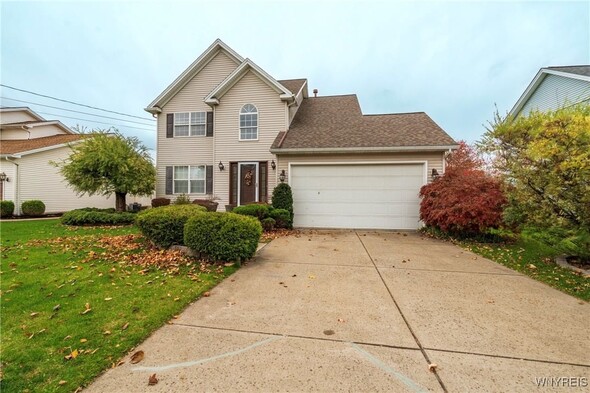 VRP- Owner will consider offers between $350,000 -$395,000 or higher. Fantastic opportunity to own a beautifully maintained home in Getzville! Be welcomed by the 2-story foyer upon entering this inviting property. The open kitchen offers ample cabinetry and included appliances, with a dining room conveniently adjacentperfect for gatherings and everyday meals. Relax by the gas fireplace in the spacious family room designed for comfort and entertaining. Upstairs, youll find three bedrooms with generous closets, including a primary suite with a cathedral ceiling, walk-in closet, and private bath. The full basement provides excellent storage and a versatile space for a home office, with a desk that will stay with the home. Enjoy summer evenings on the stamped concrete patio overlooking the private backyard with lush landscaping. Additional highlights include a 2-car attached garage and a wooded backdrop, all within the sought-after Williamsville School District. Showings begin 11/3/25. Open House 11/8/25 11am-1 pm. Offers will be reviewed 11/10/25 at 10 am.
