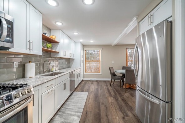 VRP pricing Owner will consider all offers between $349,000 and $389,000 or more on this completely renovated 2 bedroom, 2.5 bath home in the highly rated Williamsville School District! Step into a bright, open-concept floor plan featuring a brand new kitchen with white cabinetry, granite countertops, and a stylish tile backsplash. The kitchen flows effortlessly into the dining area and family roomperfect for entertaining. Convenient first-floor laundry and powder room. Upstairs offers two spacious bedrooms each with generous storage and updated full baths. Enjoy a quiet cul-de-sac setting with a 2-car garage, full basement for extra storage, and additional guest parking. Move-in ready, modern, low monthly condo fees, no special assessments AND meticulously maintainedWhat more could you ask for? Showings begin immediately, offers due January 14th at 10am.
