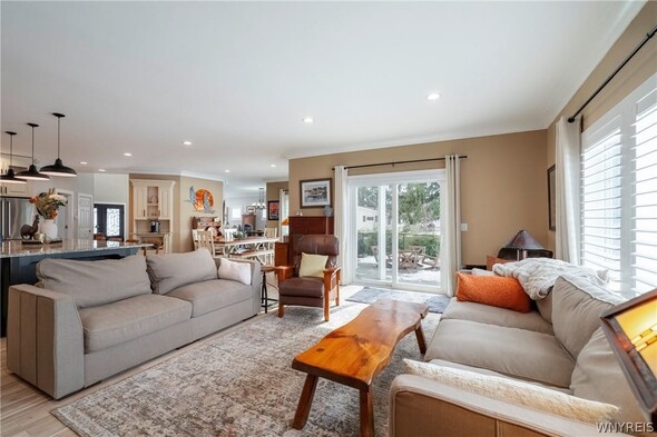 Owner will consider all offers between $1,125,000-$1,225,000 on this exceptional stone home, set on 1.1 acres of beautifully landscaped, park-like grounds in Clarence. Experience the inviting flow as each space seamlessly unfolds into the next. The impressive 2-story foyer welcomes you w abundant light & graceful design. To the right, French doors open to private denideal for home office or study. The elegant living room & formal dining area, are perfect for hosting gatherings or everyday dining. Beyond, the heart of the home awaits, stunning gourmet kitchen featuring granite countertops, lge island w bar seating, gas range/oven, convection oven, microwave, under cabinet lighting & brick backsplash. Just off the kitchen, a charming walk-through pantry feels like a mini extension of the space, complete w matching cabinetry, backsplash & extra counter area. The large eat-in kitchen overlooks the backyard, where sliding doors open to an expansive stamped concrete patio. Throughout the 1st floor, rich hardwood floors add warmth & continuity, leading naturally into the adjoining great room. This inviting gathering space features gas fireplace w a beautifully redesigned hearth & mantle, complemented by floating shelves & built-in wine fridge for modern style & convenience. The 1st floor ensuite offers a relaxing retreat, complete w 2-walk-in closets, direct backyard access, & completely renovated, spa-inspired bath featuring a widened entry w barn door, double vanity, new flooring, & custom walk-in shower. Upstairs, youll find 3 spacious bedrooms w hardwood floors, including a luxurious guest suite w private balcony, walk-in closet, & full bath. A flexible bonus space w skylights offers endless possibilitiesperfect for addtl lounge area, workout rm, or creative studio. Another beautifully updated full bath w custom walk-in shower completes the 2nd level. Outdoor living shines in the expansive, fenced backyard surrounded by lush landscaping & large patio with custom pavers. The heated & cooled 3-bay garage offers year-round comfort & storage, complemented by a 200 sq ft drive thru shed for tools & recreational gear. Thoughtfully designed & meticulously customized!
