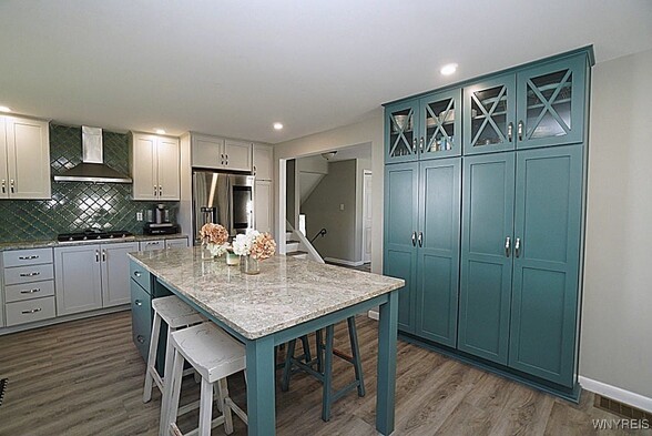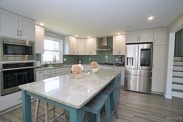 Beautifully updated tri level Home in Morgan Farms. Updated gourmet kitchen with all new cabinets - island with granite - glass back splash - high end appliances - luxury vinyl flooring - fireplace - to name a few updates. All new windows - appliances - furnace & A/C. Ideal location on large lot within walking distance to Village amenities. Lower level family room with separate entrance and full bath. Glass block windows - roof 12-15 years old. Relax on patio with retractable awning.